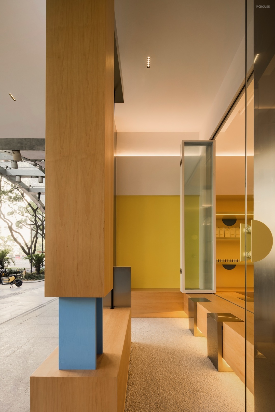 沿用品牌第一间店铺的蓝黄配色,除了考虑前卫的冲击力色彩对年轻化的打造之外,更是应对老顾客的“熟悉感”表达,用最直接的色彩唤起回归感,这是属于空间与客人之间互动的秘密。