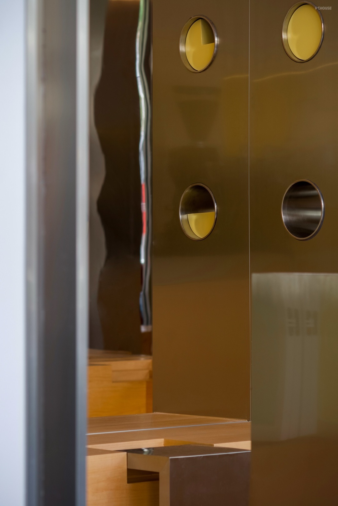 镜面不锈钢扩大空间视觉宽度,同时,金属与木质的碰撞带来硬与软的完美接洽,空间被赋予生动的,多向的感知,可以是时尚的,活泼的,冷酷的,也可以是柔和的,轻松的,自然而然的。