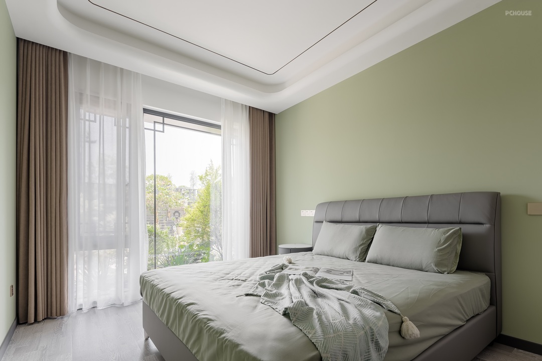 父母房的空间色彩的搭配选择,相较其余房间会平和单一得多,贴合长辈对宁静质朴的氛围的偏好。