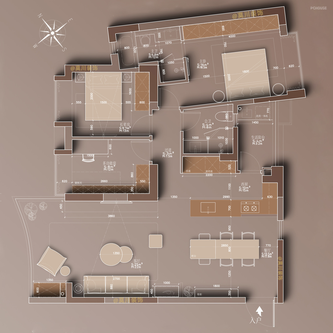 2. 改变主卫出入口,优化主卧与主卫间的动线,提升居住体验