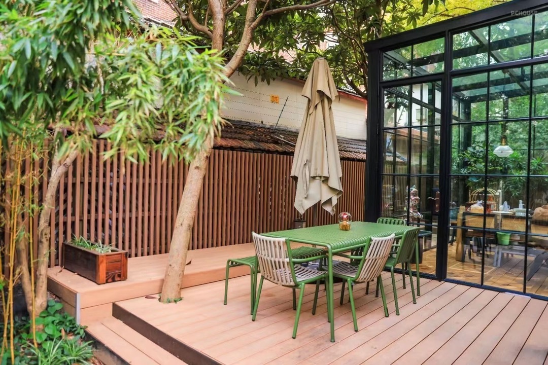 由于是老洋房,所有结构墙体(包括原有的罗马柱)基本都承重,所以我们只是在原有基础上,把原来的露台和室内合并到了一起,并在一楼增设了一个小客房,其他并未做大的改动。