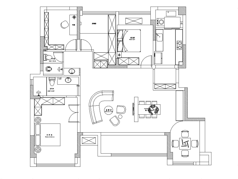 5、将主卫向右侧扩大,改变主卧的进门位置,由原来的单开门改为双开门,更优雅大气。