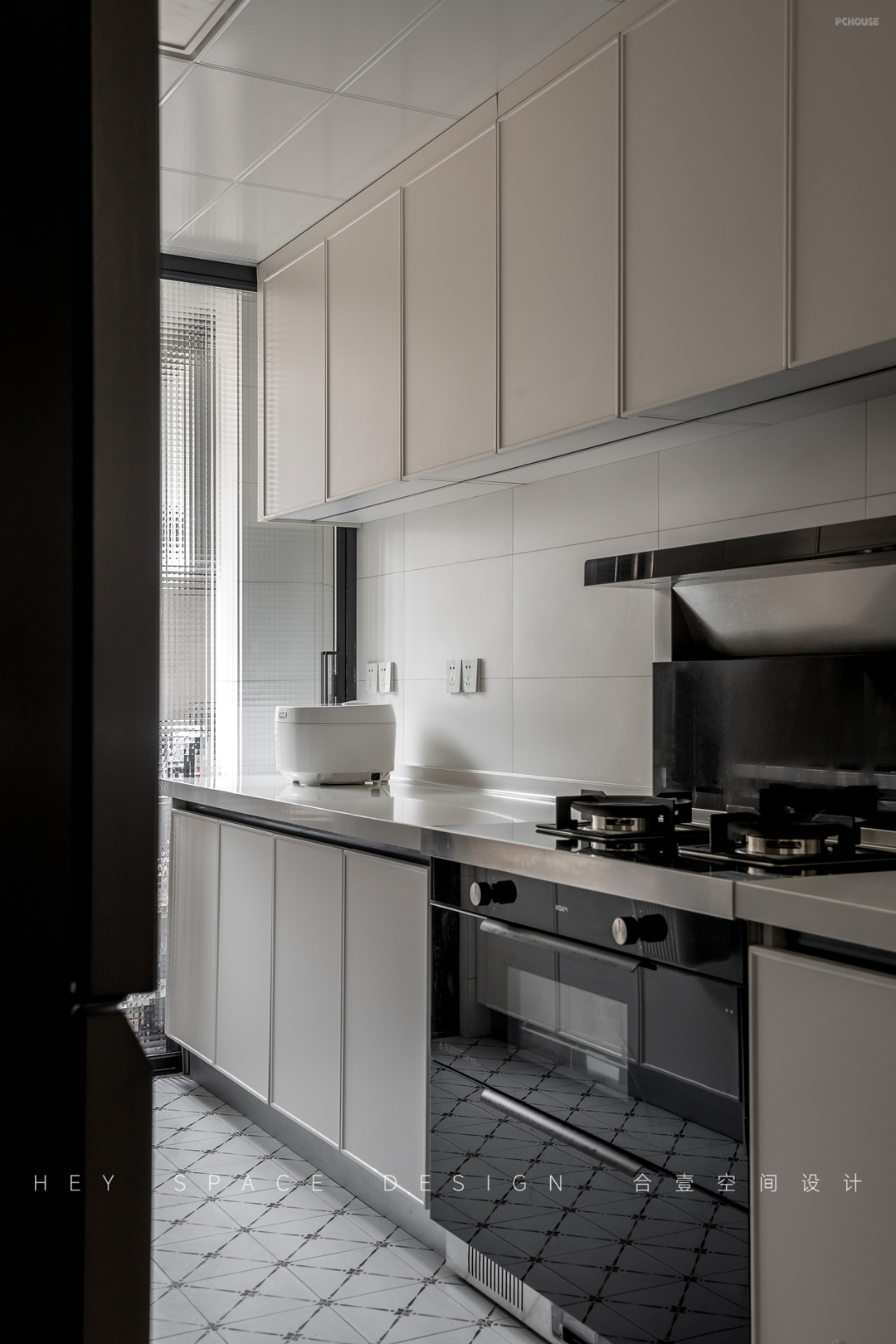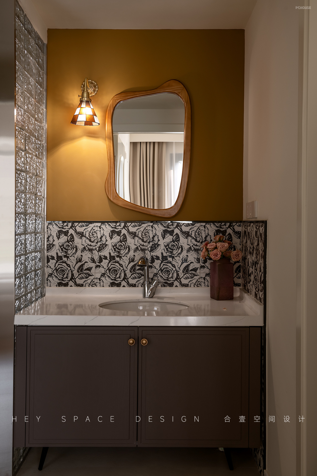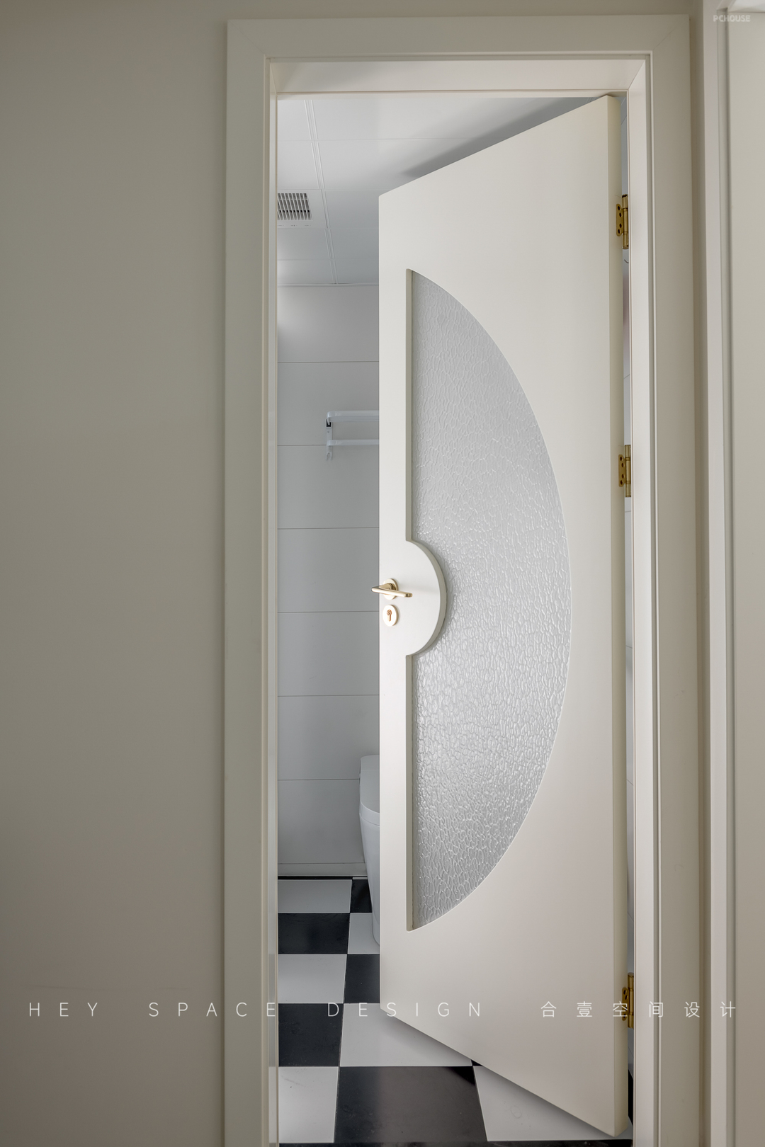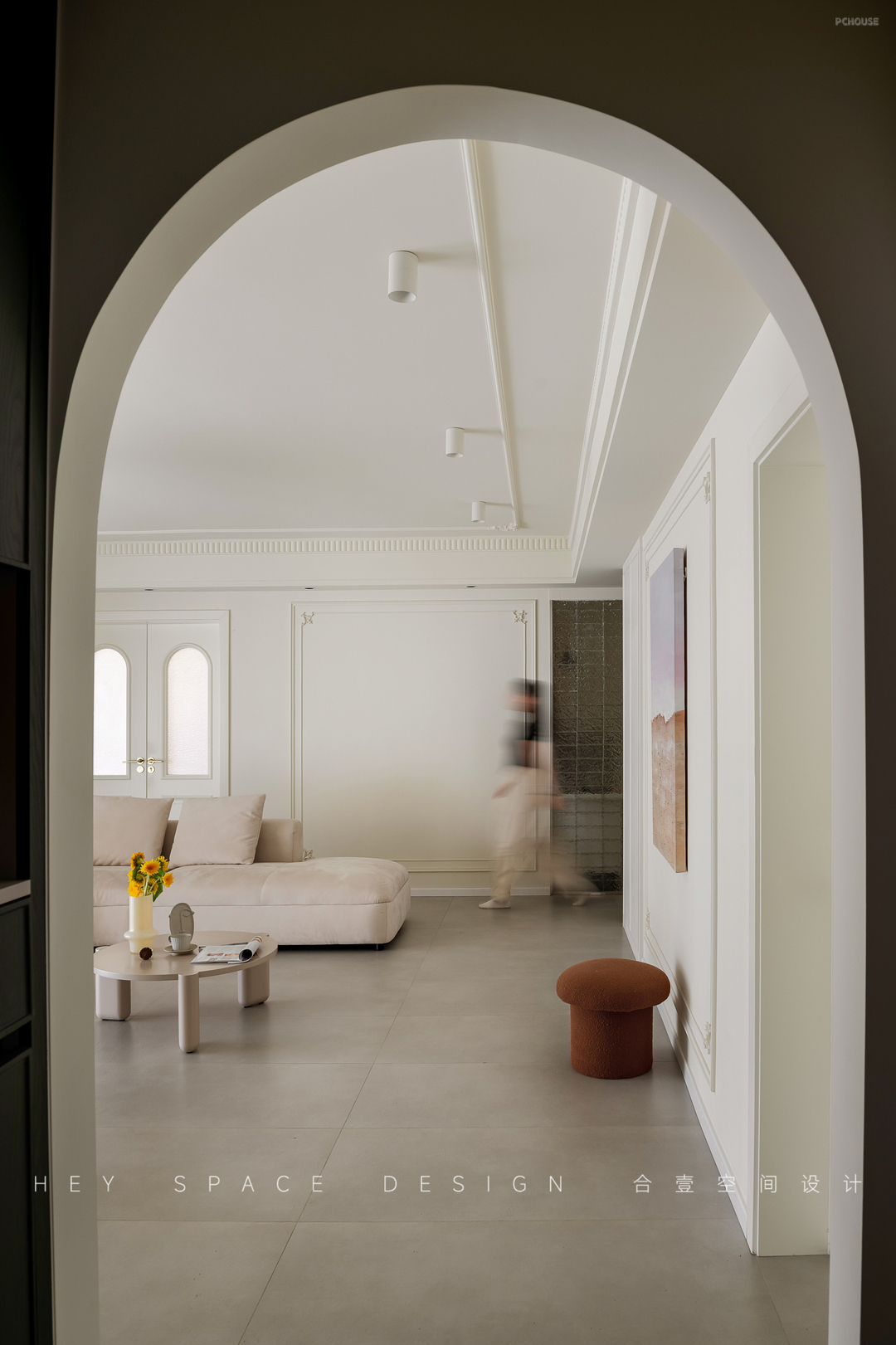 @合壹空间设计:透过圆弧的拱门,得见满室温柔,线条交错勾勒,描绘出家的精致优雅,在视线的尽头,透过朦胧玻璃砖的光影,让家拥有无尽的想象。