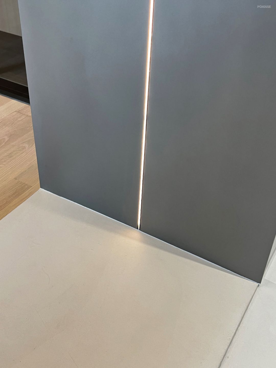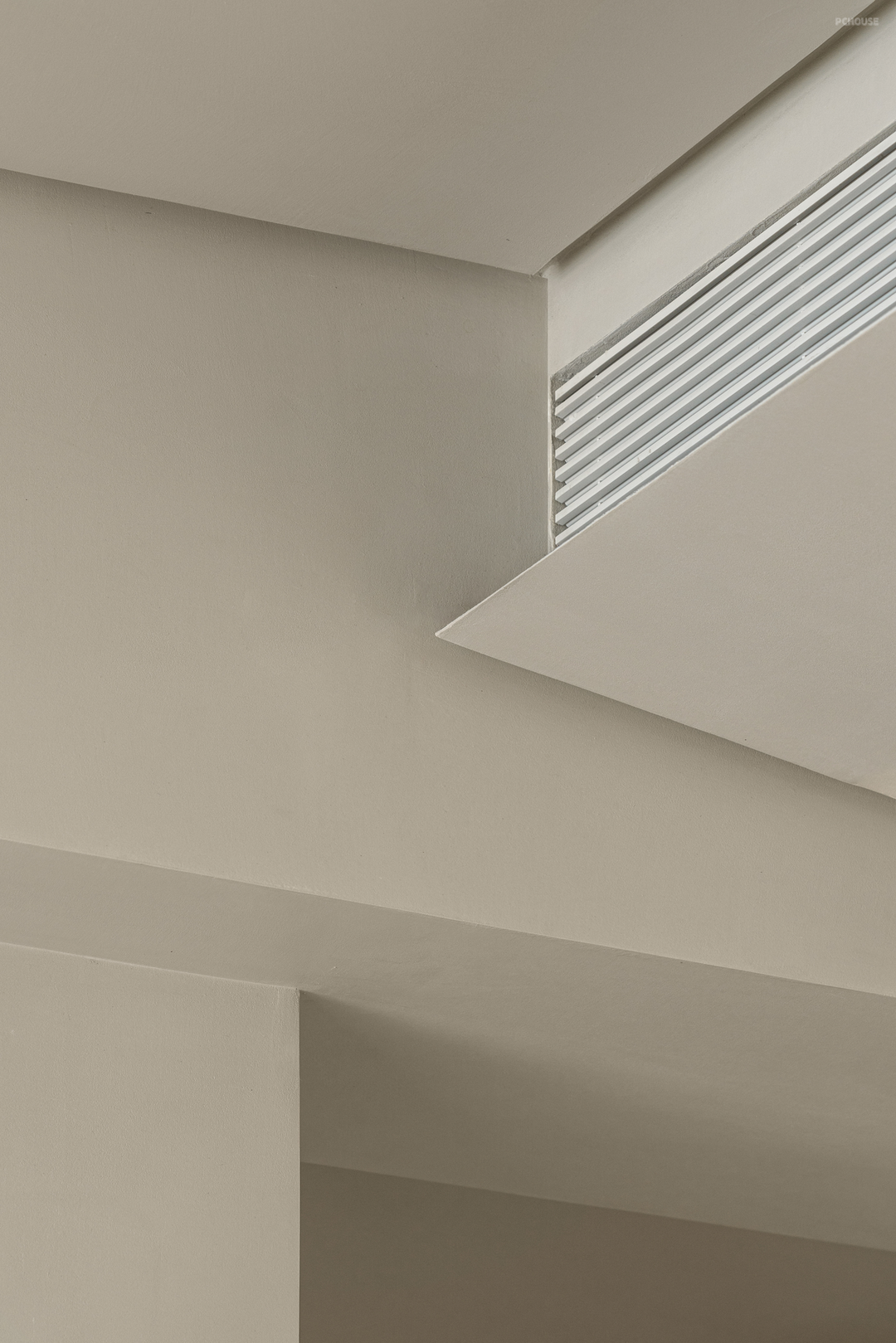 狭长的走廊空间延续客厅的处理手法,阴影缝的设计让它更加的富有细节,凸显空间的结构和立体感。
