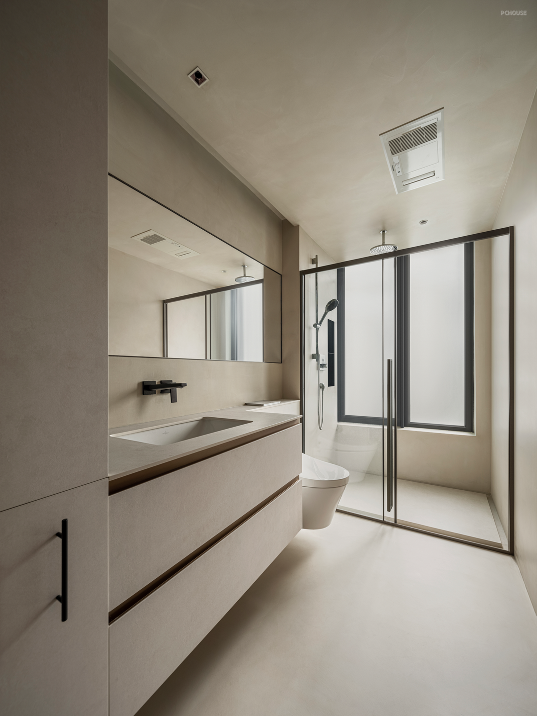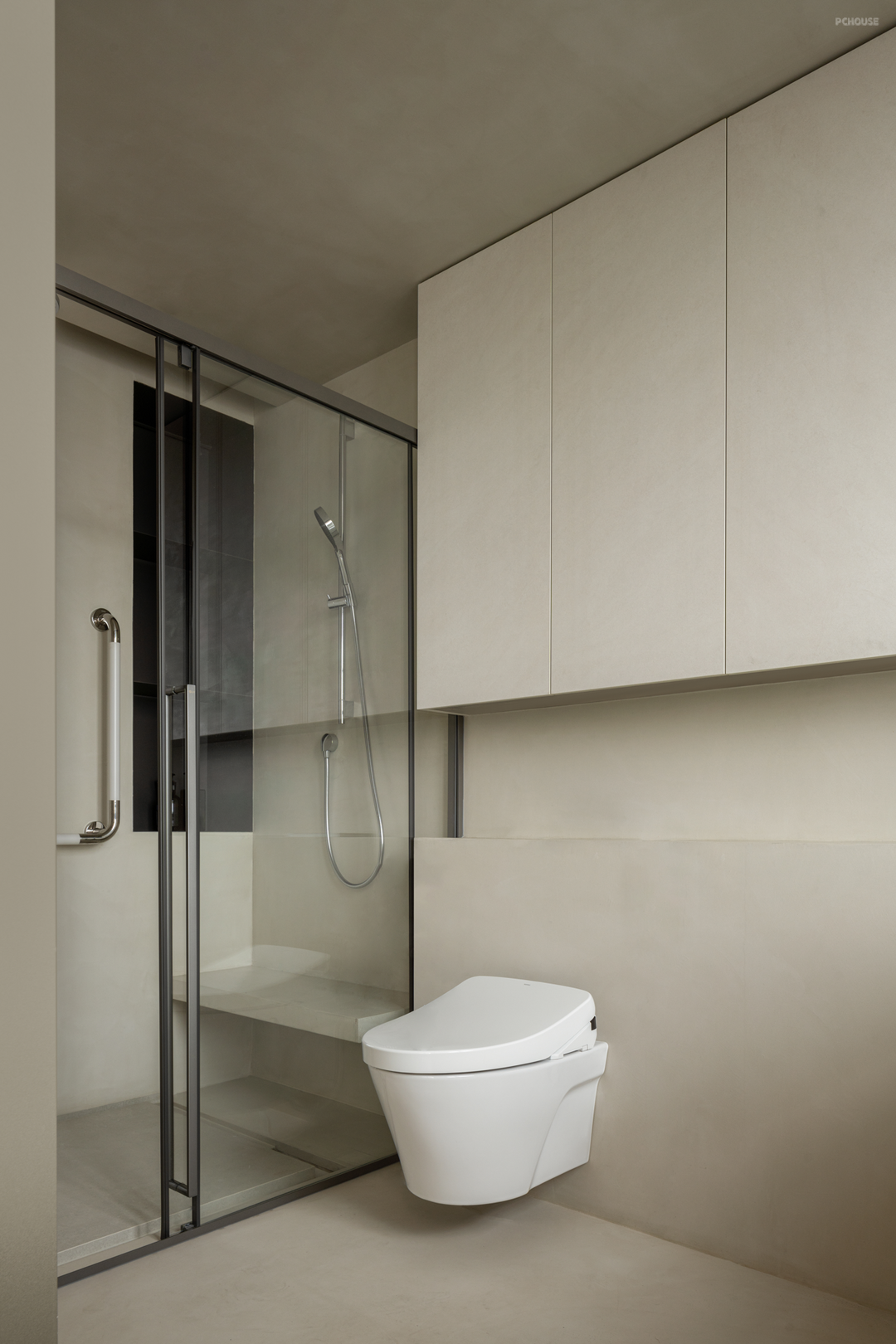 淋浴间我们就用的同色微水泥岩板,整体性会更好。