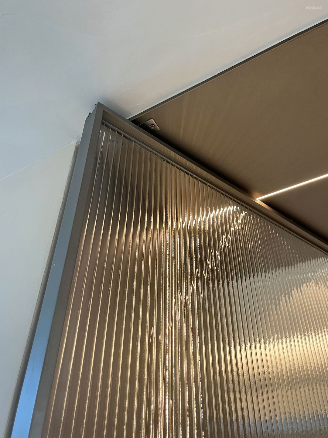 房门左右两边3mm不锈钢折边框套,顶部没有门套收口,整体性会更好。