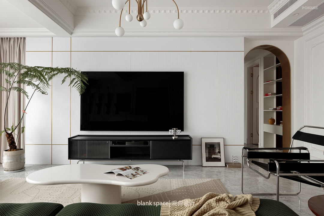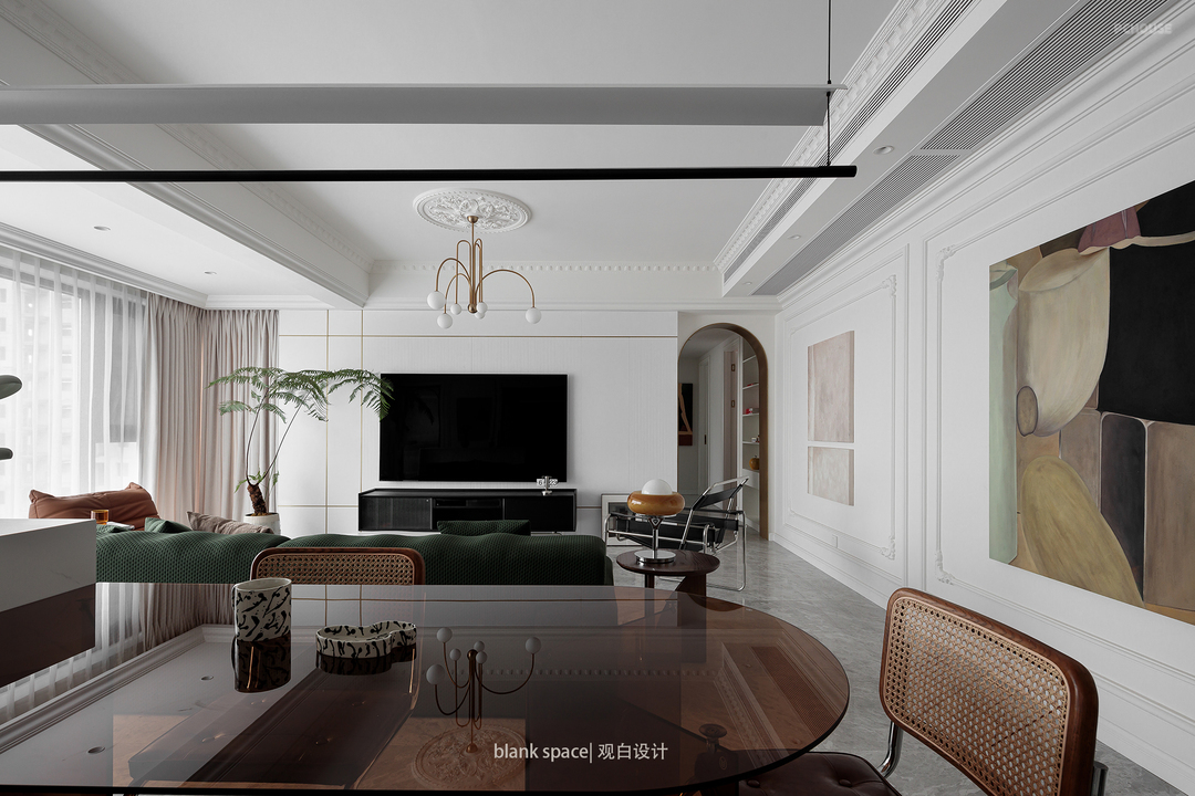 设计师将拱门、线条等具有法式风格的代表元素融入柜体、墙面等细节处;遵从屋主实际使用习惯,在不打破原有动线的同时,优化调整部分结构,使得布局空间更加通透精致。