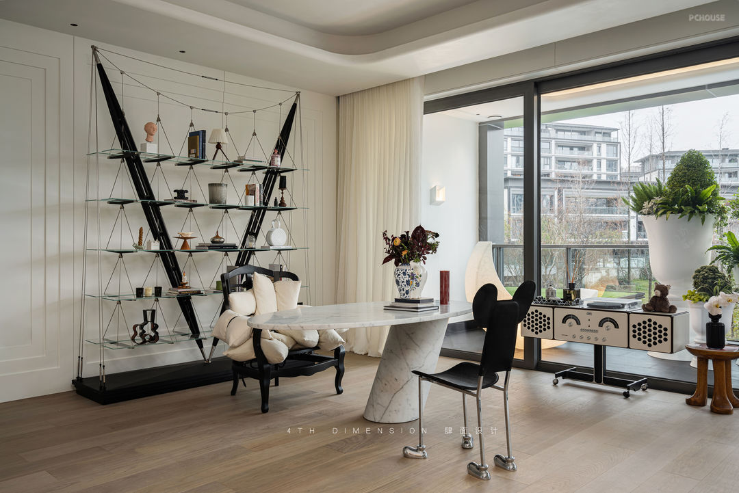 The open office area slowly emits a wonderful magnetic field around the limited Cassina sailing bookshelf, with a lightweight frame that makes Ziying's collections and decorations look like they are floating in the air.