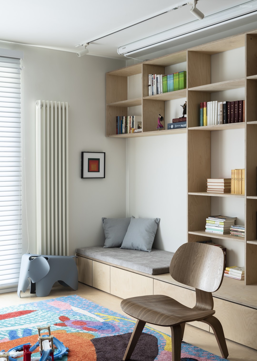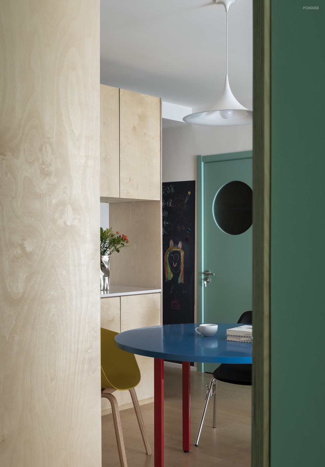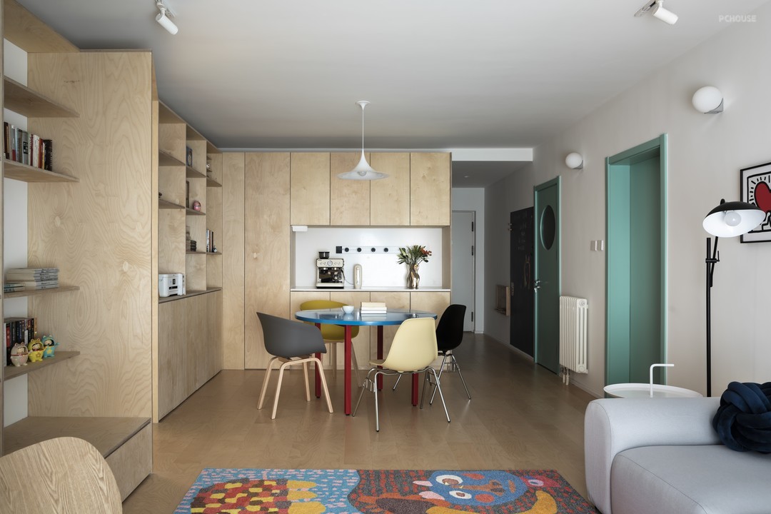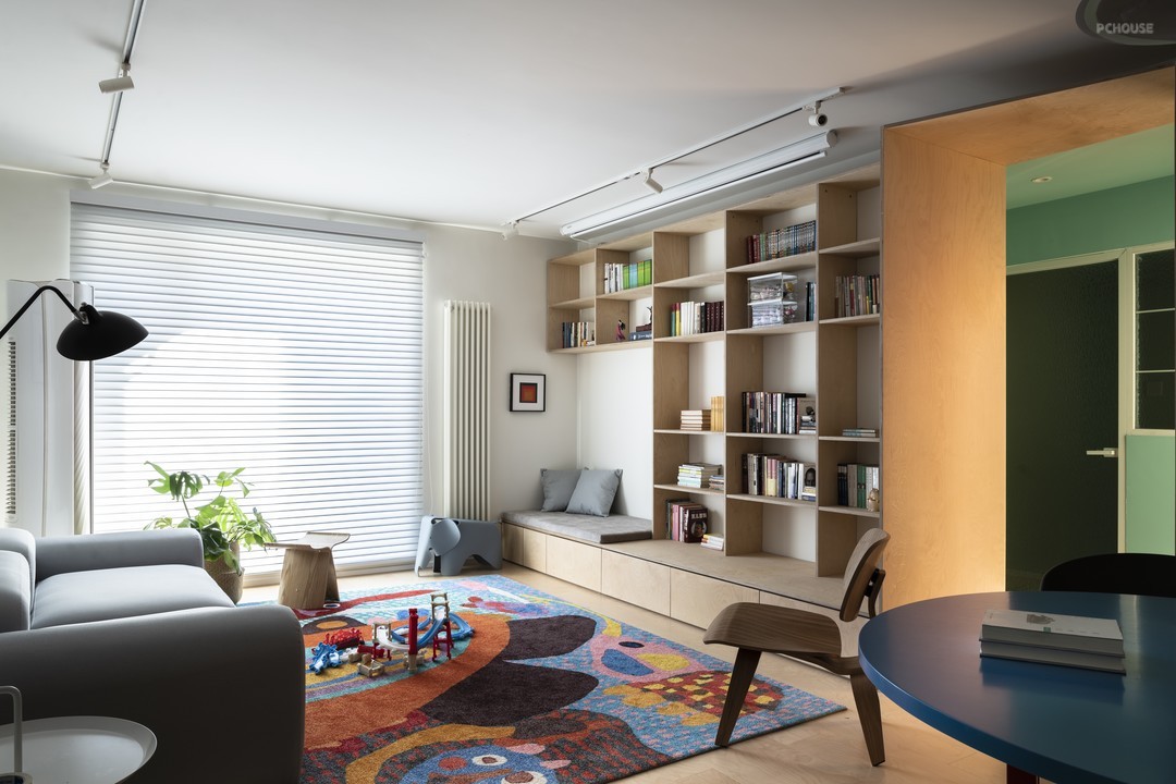 在中国,大部分的儿童在应试教育下都住在几乎没有任何杂音的房间里,独立面对着写字台,一边与睡魔斗争,一边解答大人都束手无策的难题。设计上我们模糊了就餐、学习、玩耍、办公的空间,所有功能相互交织,除了必要的睡眠空间,把更多的功能外置。创造一个可以“沟通”的空间。父母和孩子同在一个空间里,做不同的事但能感受彼此的存在,欢声笑语皆在这里发生。