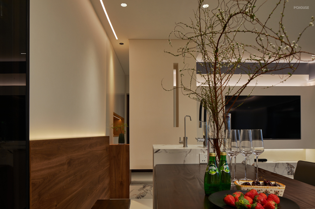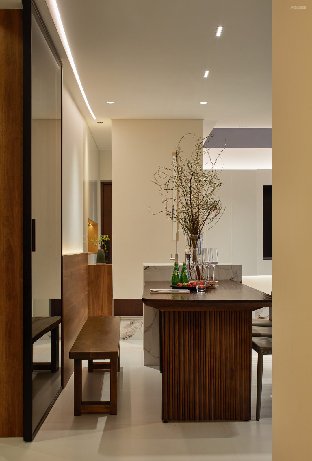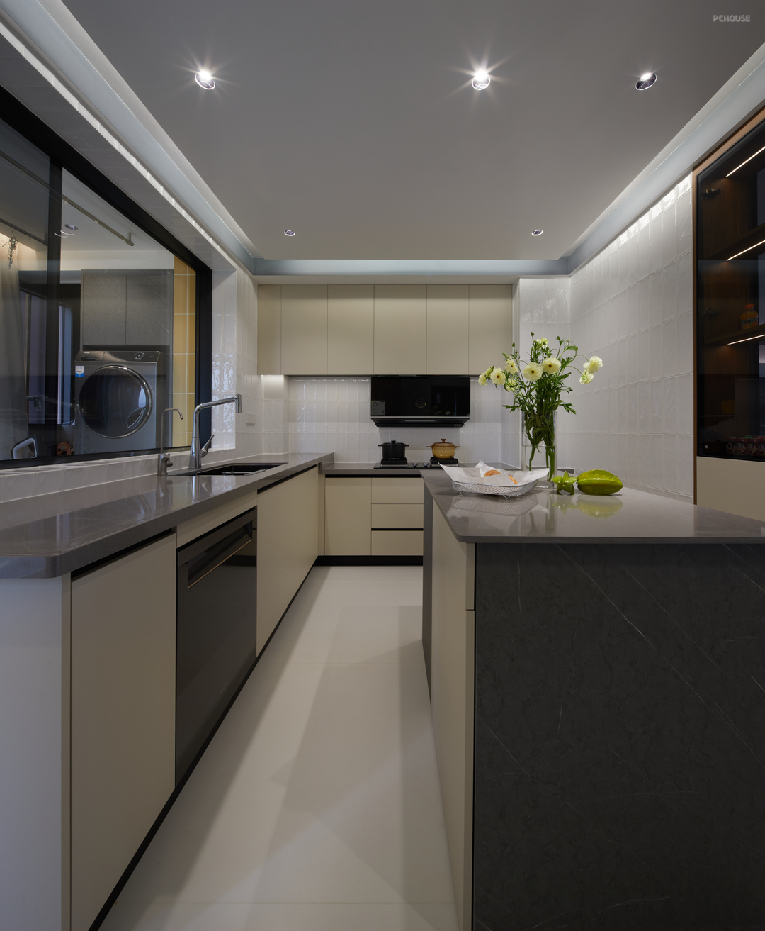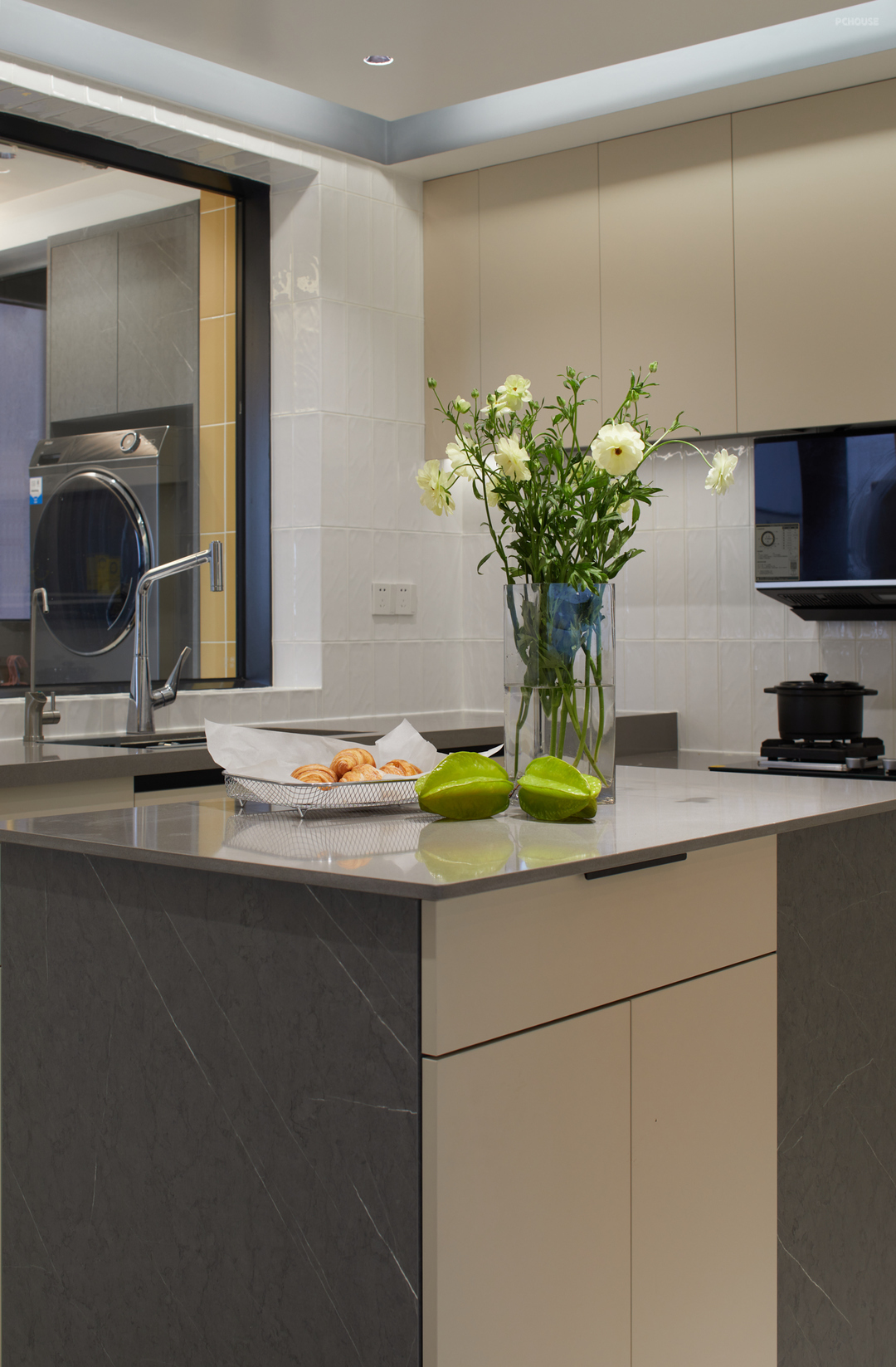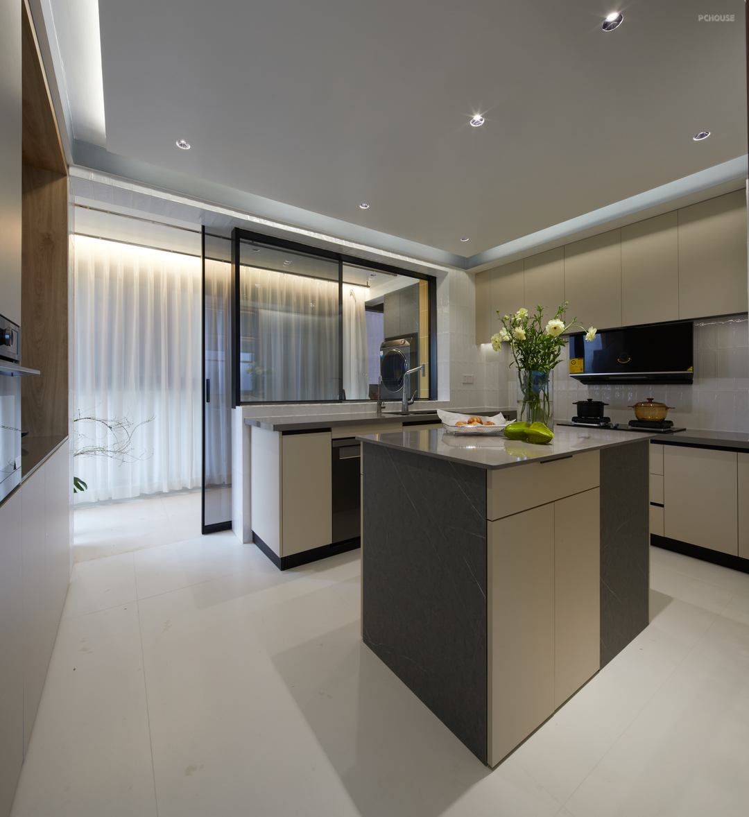 厨房是烹饪一日三餐的场所,用设计重构空间,厨房亦可变身家人增进情感的空间。在厨房加入中岛,可以作为操作台备餐用,最重要的是有收纳功能。