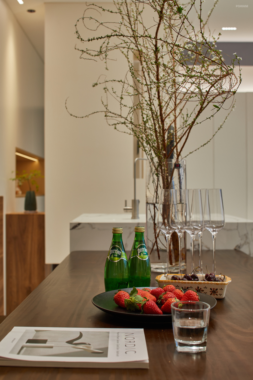 餐厅空间构建人与美食之间的联系,让空间生动。这款岛台餐桌一体,台面也变宽敞,不仅方便更多人就餐,还能做此处看书、办公、陪孩子做手工等等...岛台采用的是大理石材质,不仅满足了使用的舒适性和实用性,让整个餐厅温暖起来,让家居生活更轻松随性。