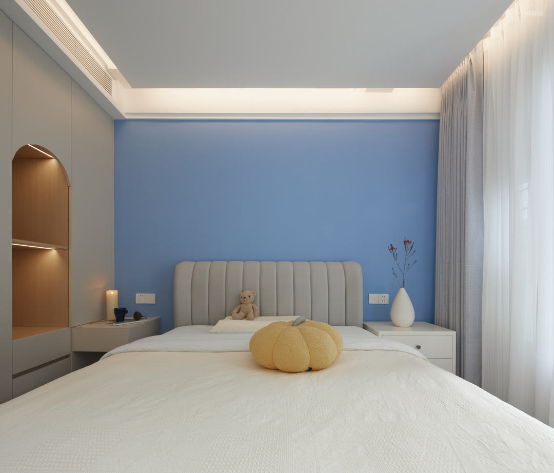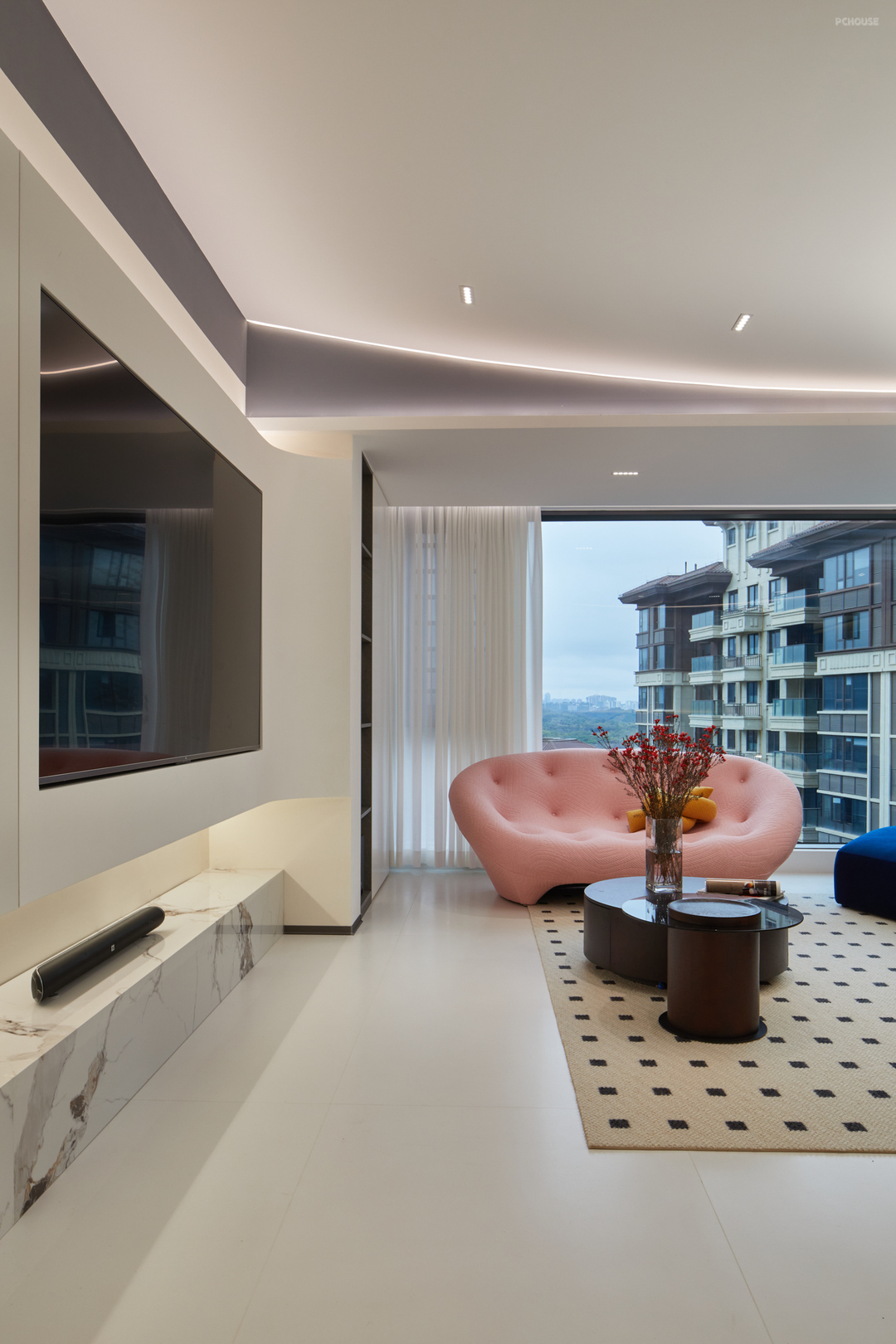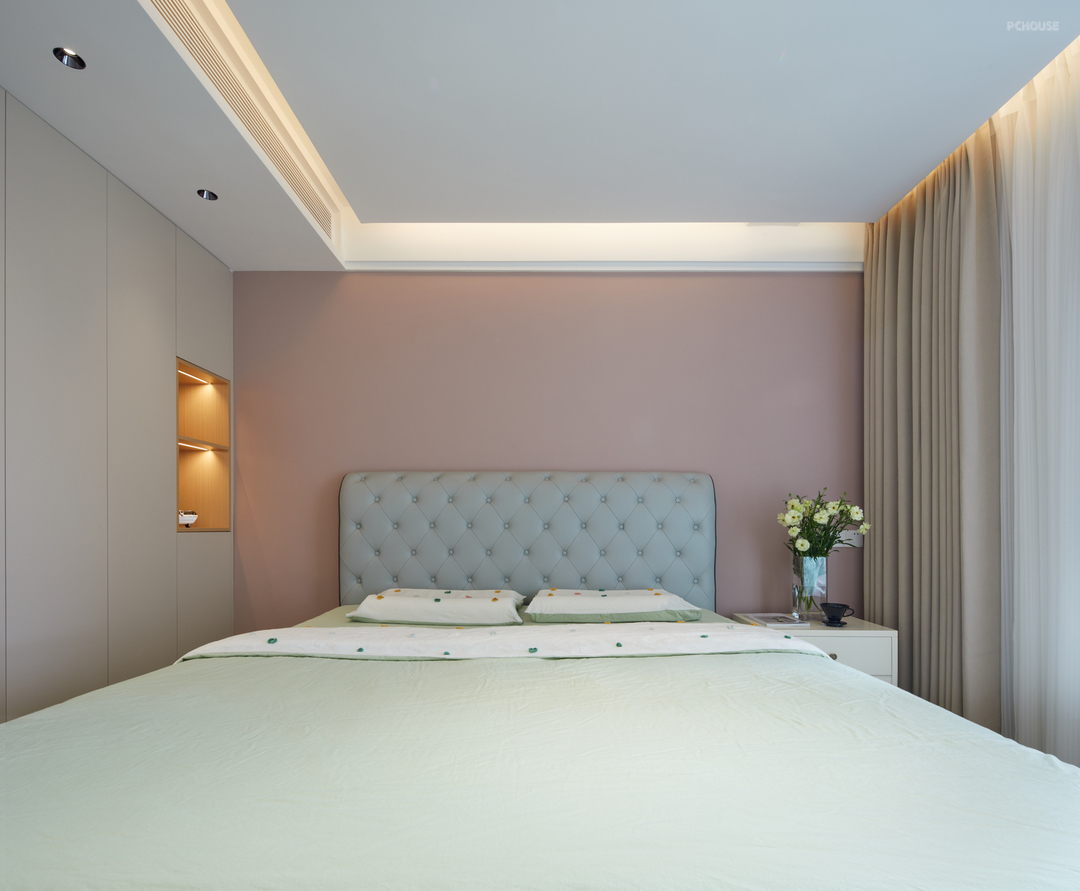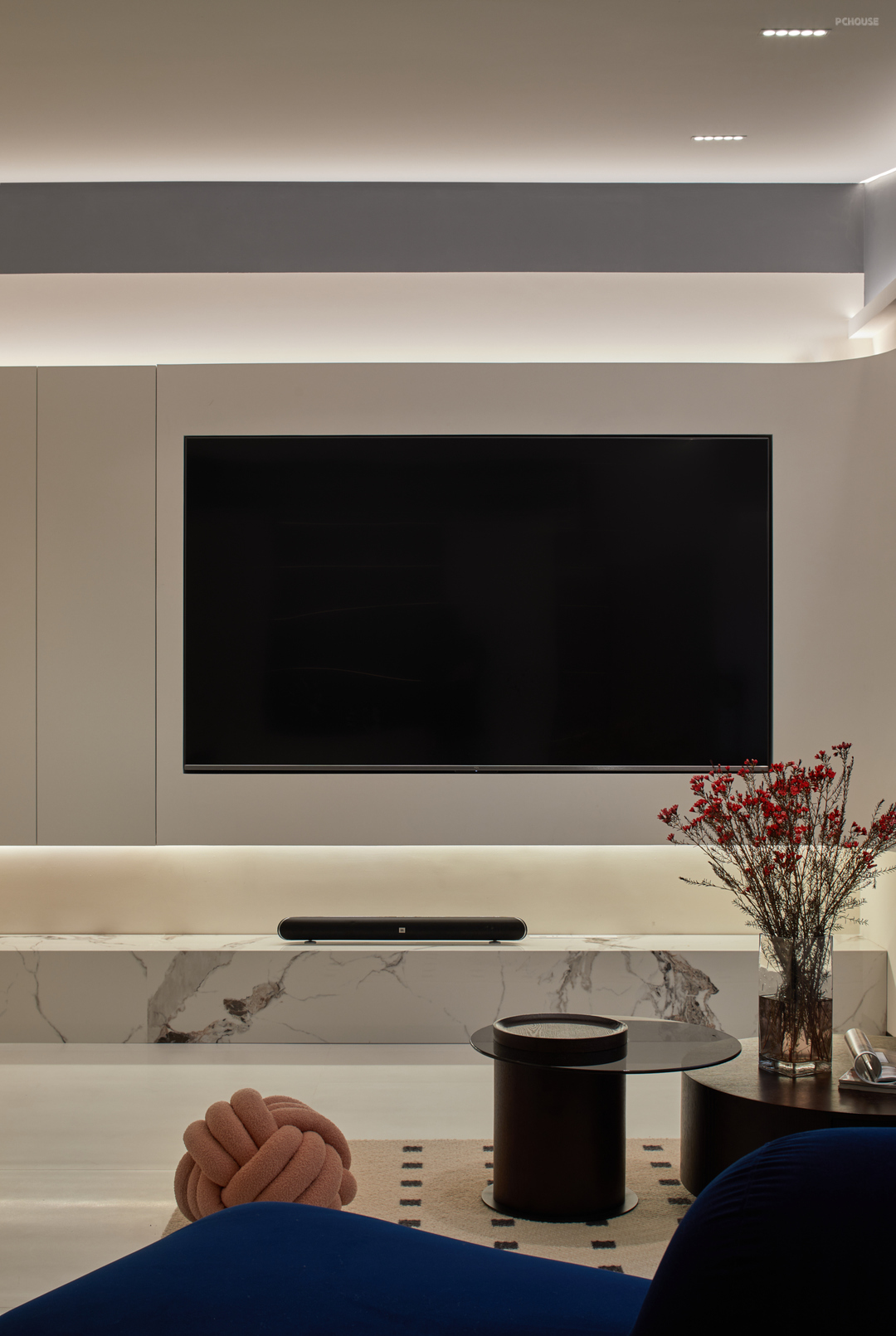 在无主灯设计的基础上添加智能灯光,不用自己动手开灯啦。浪漫带进室内高频的生活节奏以及紧张的工作压力让现代人更向往自由、简单、宁静的生活。