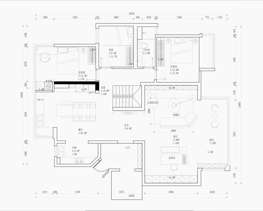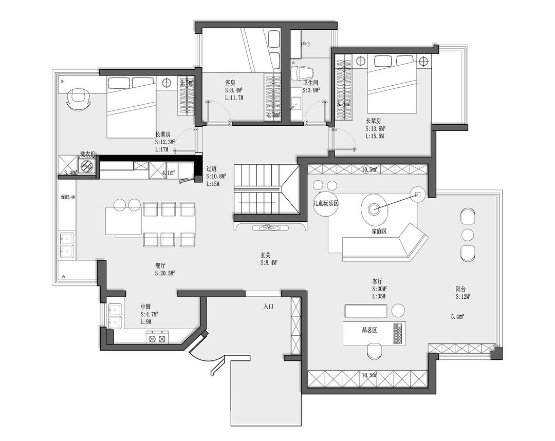 ➌ 二楼卫生间干湿分区,干区独立纳入公共空问使用。