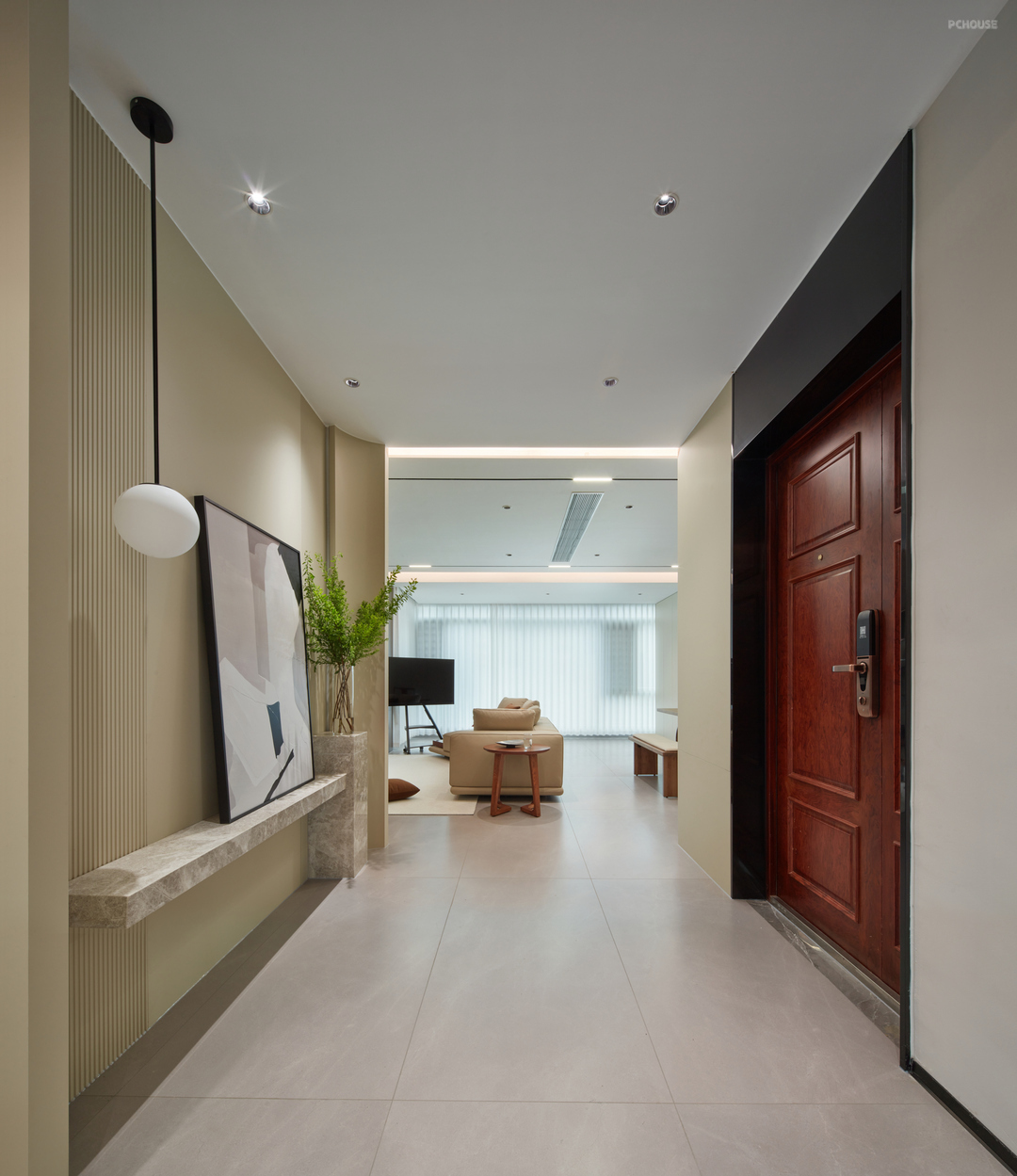 玄关,作为入户的第一印象,要的不仅是实用,更重要的气质在线!玄关墙两侧做了对称的弧形墙板,里两侧做了格栅+石材玄关台,还可以安装个性小吊灯,买一些艺术的装饰小品或者绿植盆栽,整体氛围一下就出来啦!步入玄关,生活画面开启,美的意识被唤醒。与自然同居,烟火可亲,空间秩序井然有序不刻板,人居其间,心情畅达,自在安闲。