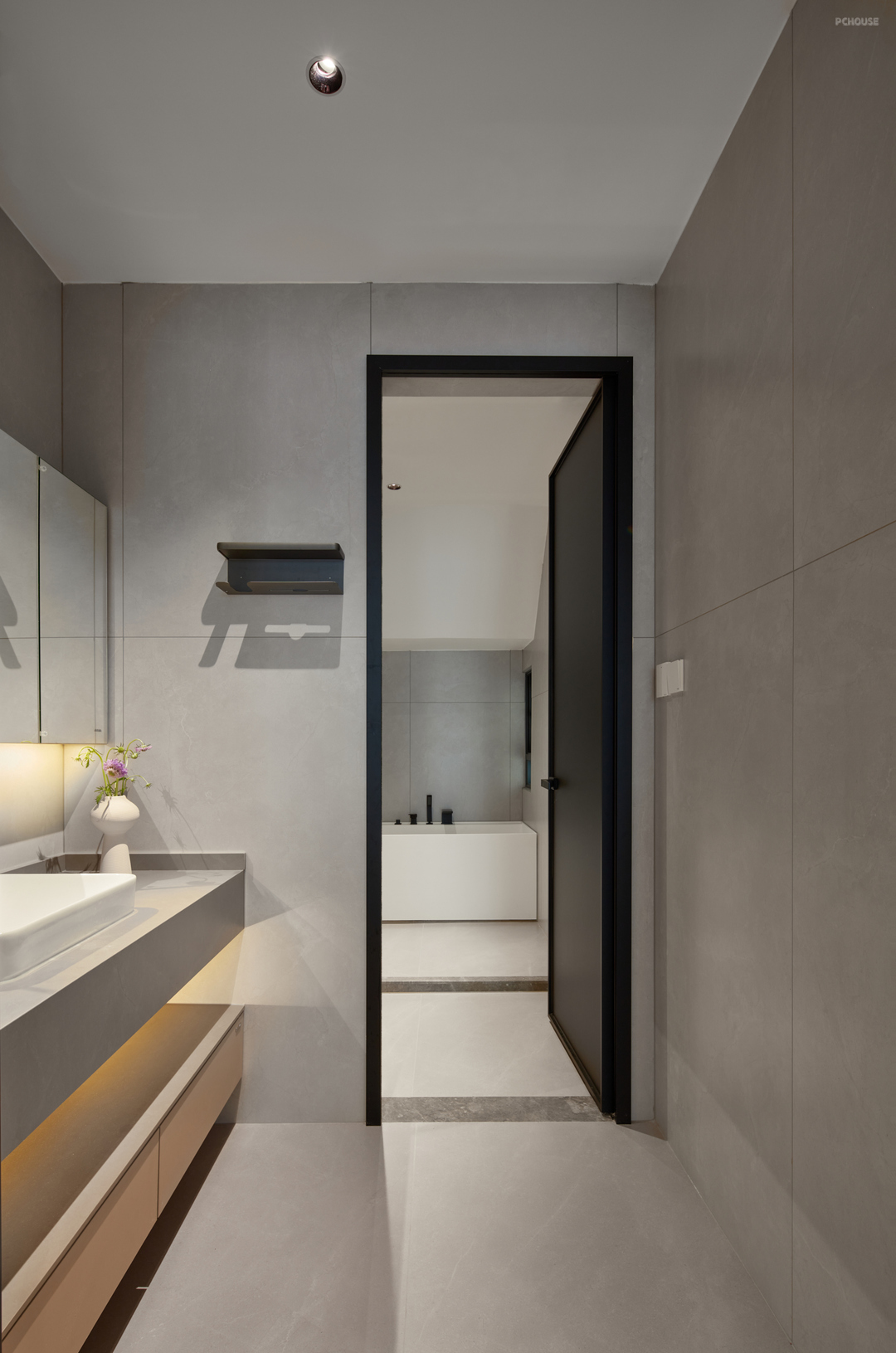 卫生间采用干湿分离式设计,各功能各占一角,平分秋色~长虹玻璃半隔断,轻奢风,高颜值,清洗只需要擦玻璃,没有藏污纳垢的轨道,方便打扫。种草了哑光浴缸,黑色五金,想想以后泡澡的日子就美滋滋。人喜欢回归到简单质朴的美好生活中,好的空间也不是一个客观的物理构成,生活美学它远不是一个简单的概念表达,它应该是由生活在此的人的意识决定,是对美好的精神诉求表达。而设计让爱有了温度,空间有了温情。