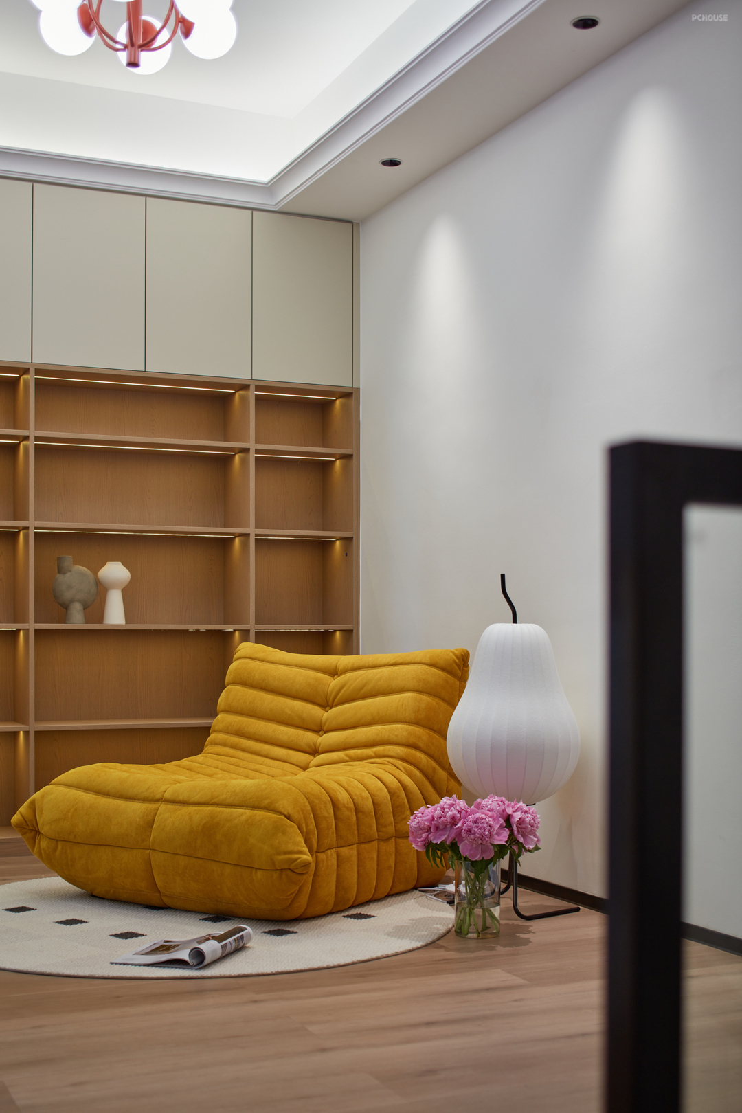一面书柜实现多用;展示、书架、储物,沿着墙面设计收纳柜,遵循三分漏七分藏比例,在视觉上实现“刚刚好”。一门到顶设计,外观简约大气,内部储物空间充足。玻璃柜门设计打破了单一的颜色,内部专做展示、乐高、手办、潮玩往里摆就行了,透过玻璃既能展示,又能起到保护作用,还能提升增加整个柜子的颜值。人一旦摒弃世俗之扰,便得到了精神的洒脱,于此,营造一个独处空间,让人静心,在这里与好友,家人怀情听谈,优雅感受生活的从容。