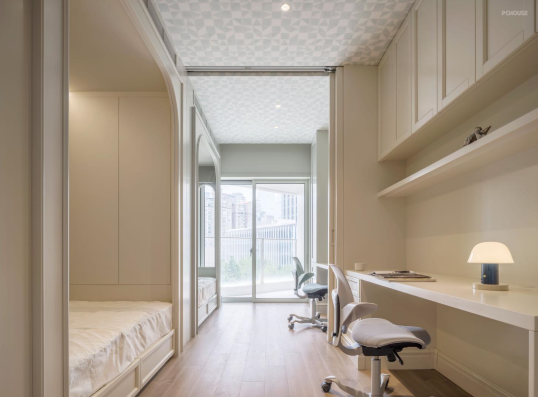 逐一拆解时空的脉络,将藏艺带入房间。既可敞开又可关闭的儿童房,通过结构上的划分,让同一区域的两位小屋主,既可以共享休闲娱乐空间,同时也拥有各自独立的“秘密基地”。