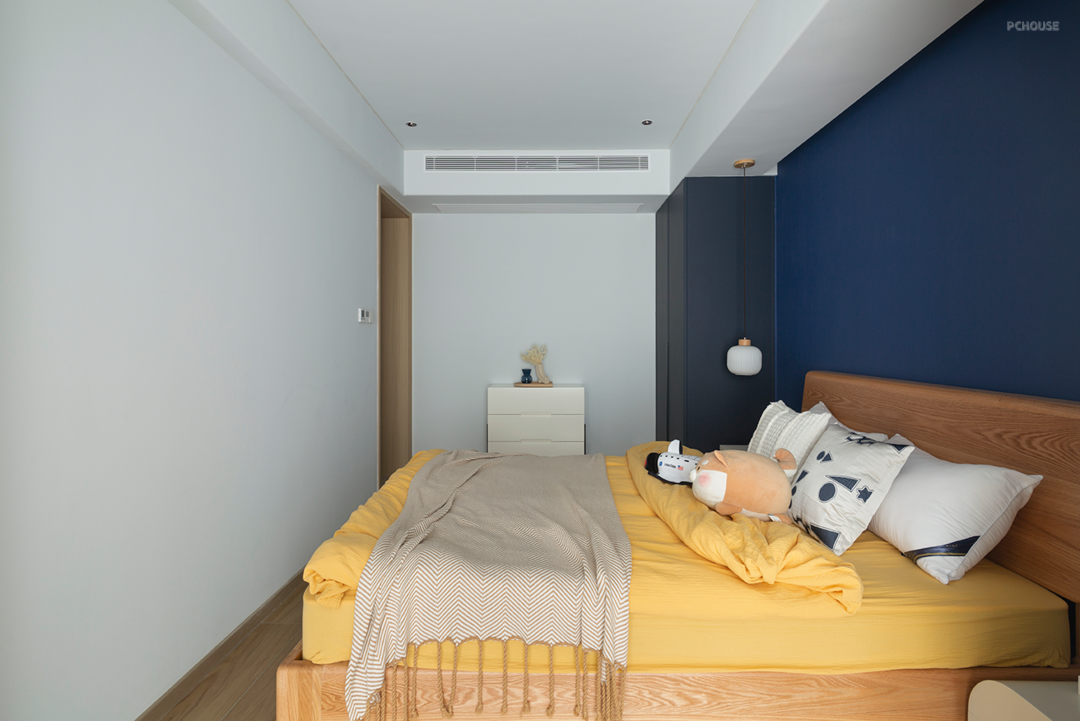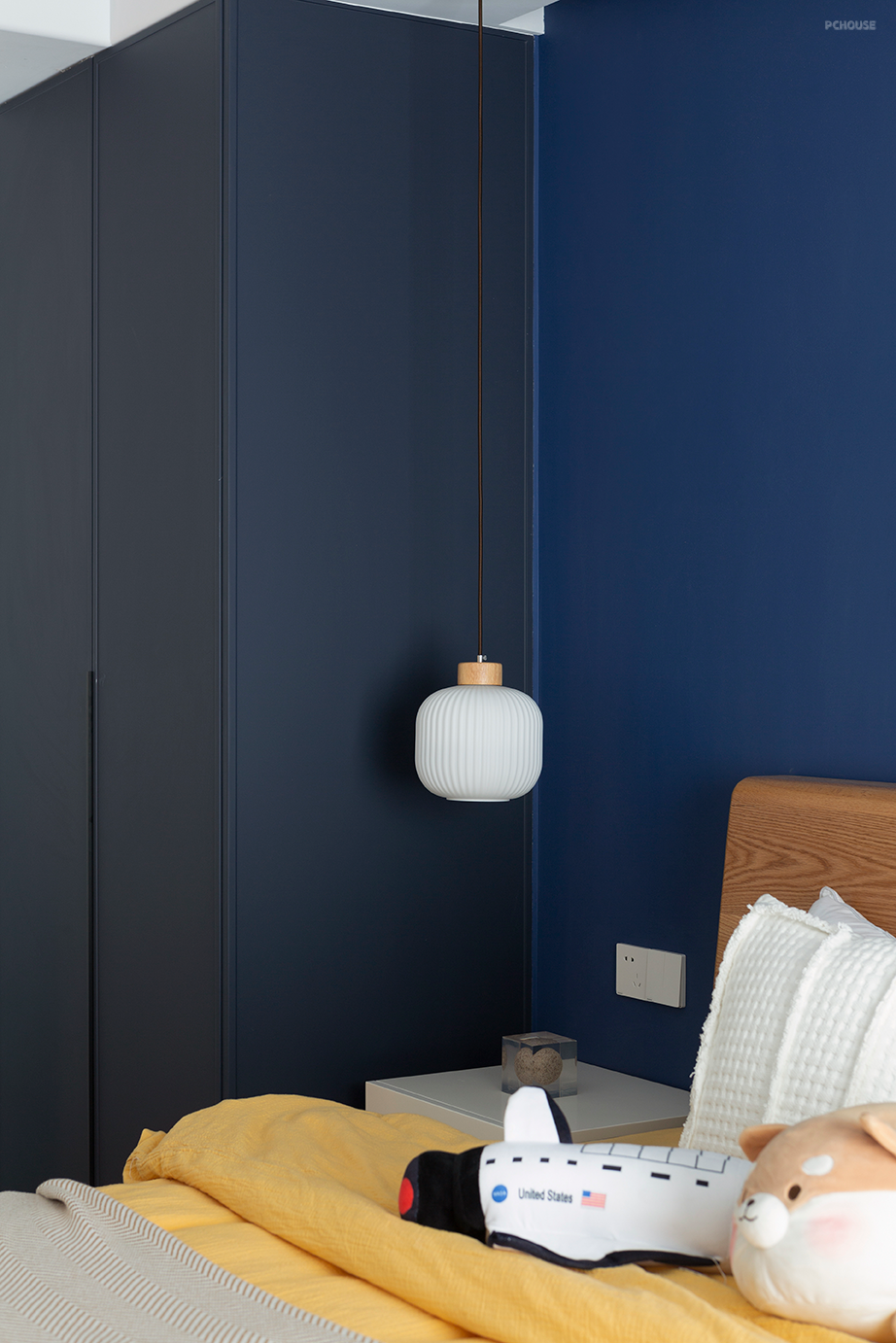 放下思绪,深潜梦境,卧室空间被柔和的灯点亮,大量木质元素搭配纯棉床品的柔软,让人格外安心自在,即使在阴雨天气也有暖意融融的感受。