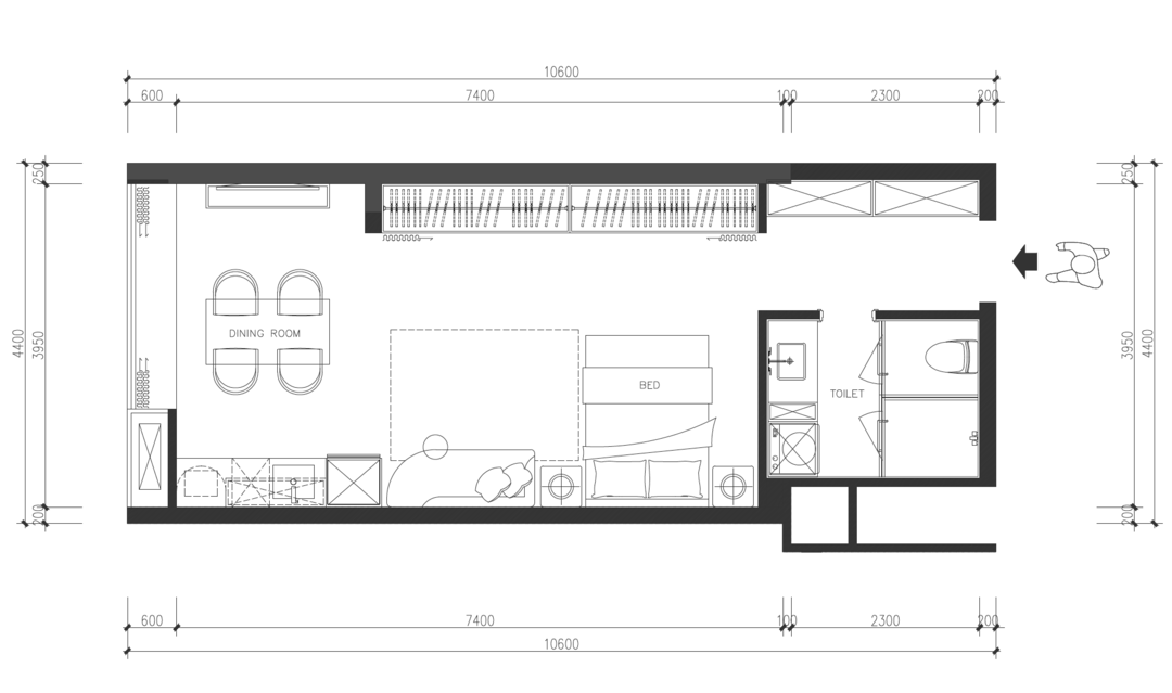 业主是独居女生。工作繁忙,频繁出差,因此习惯了酒店式的房间布局~