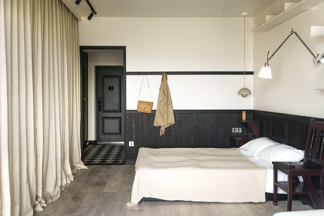 客厅也是卧室~跟门厅和卫生间的南洋复古风相比,这个空间更简约。