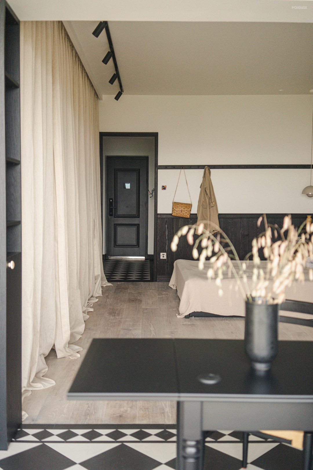 地上的黑白花砖让进门好有仪式感!