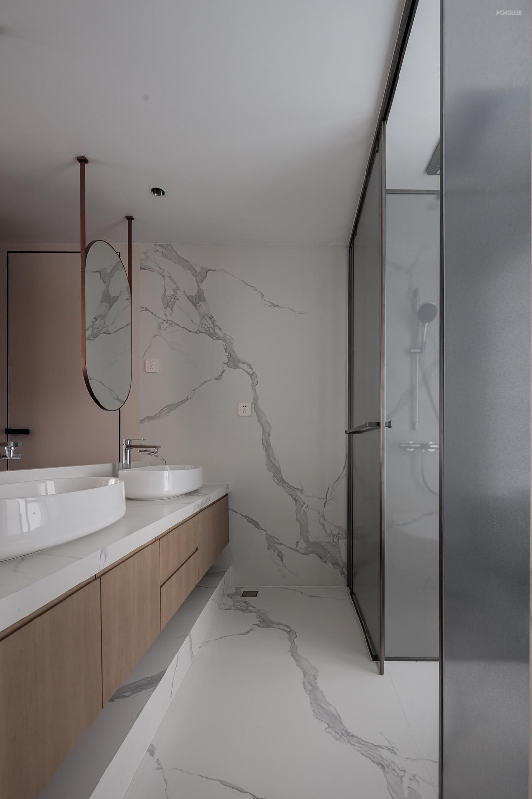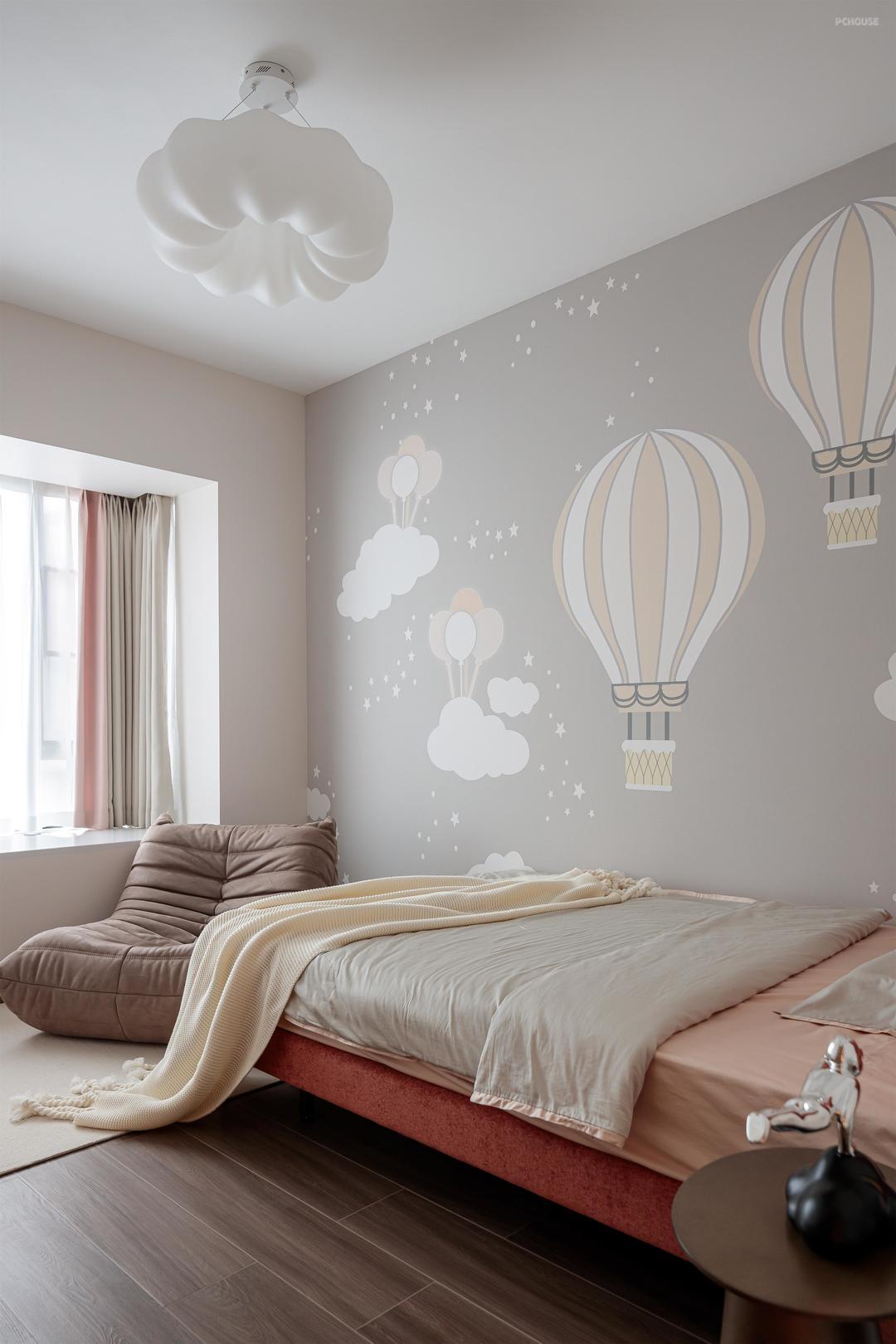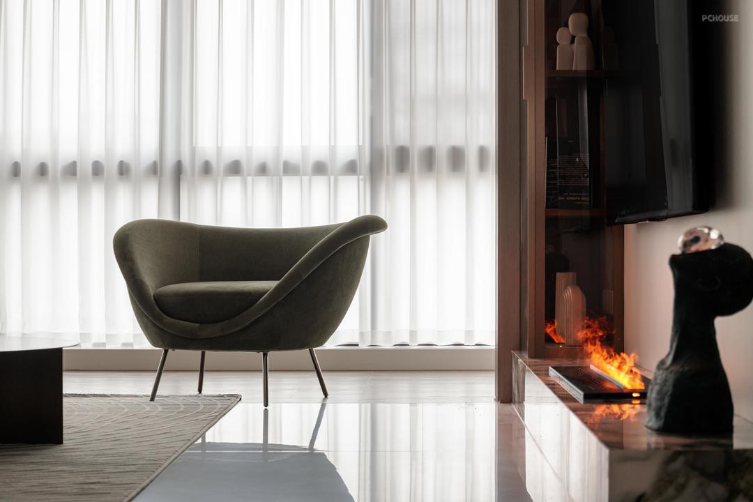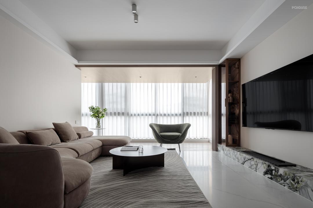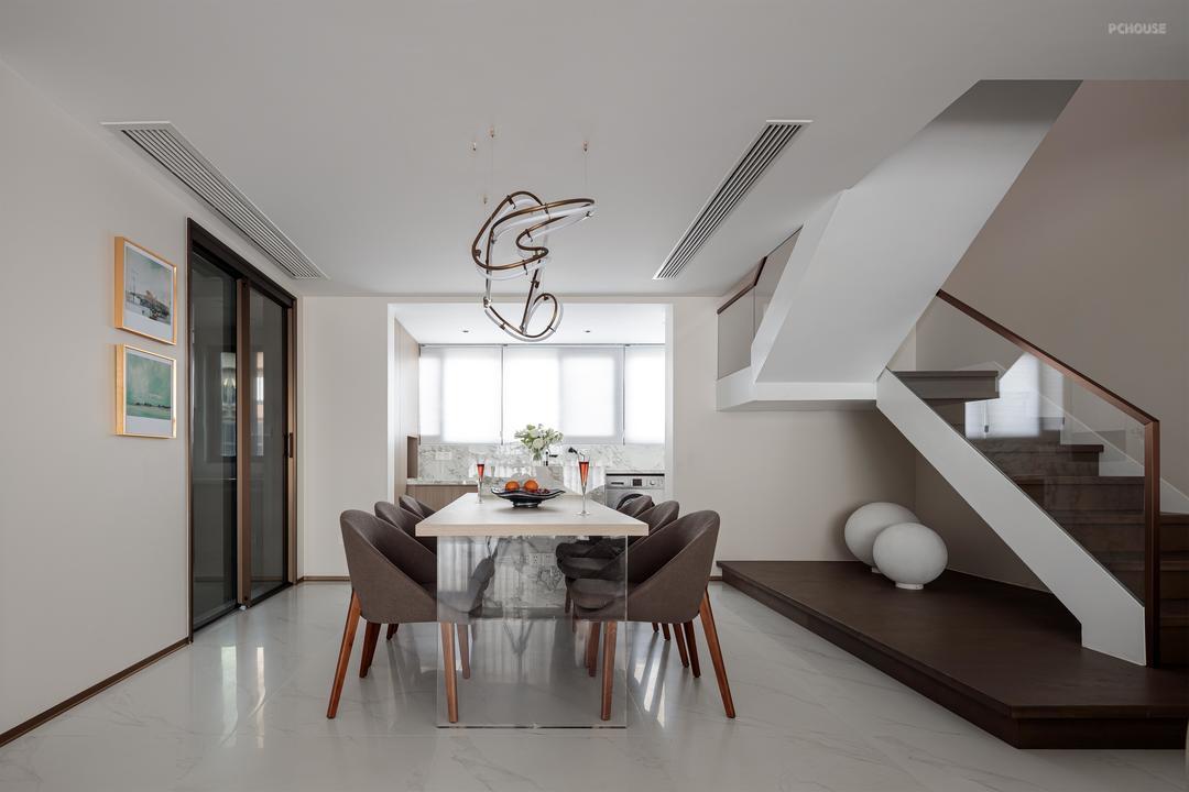 在风格方面,定位为现代风格,空间关键词为知性、优雅。以暖系浅咖色打底,灰木纹作为主体家具背景色,带有艺术气息的,弧线型的家具、软装,和有意思的装置艺术,在空间中徐徐展开,充分的去体现整个家的气质。