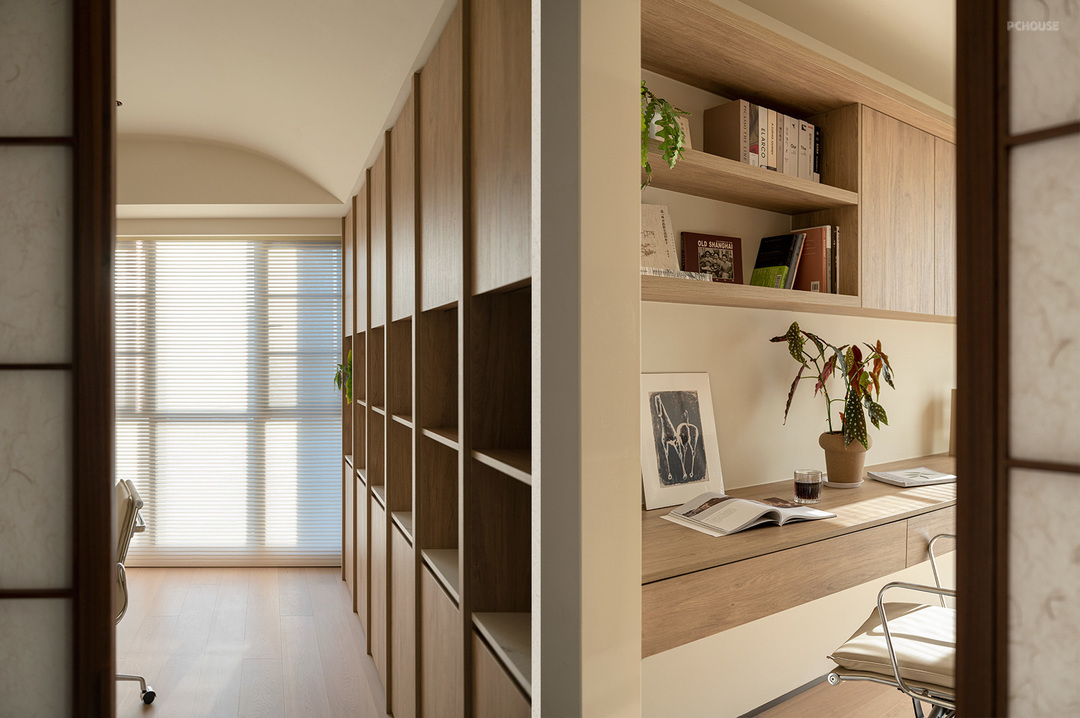 书房是一个专门供阅读、学习和工作的空间,它是知识爱好者必不可少的地方。一个理想的书房应该具备明亮、安静、雅致和有序的氛围。书房的窗户刚好设计在能够充分接收自然光的位置,同时可以遮挡过强的阳光。