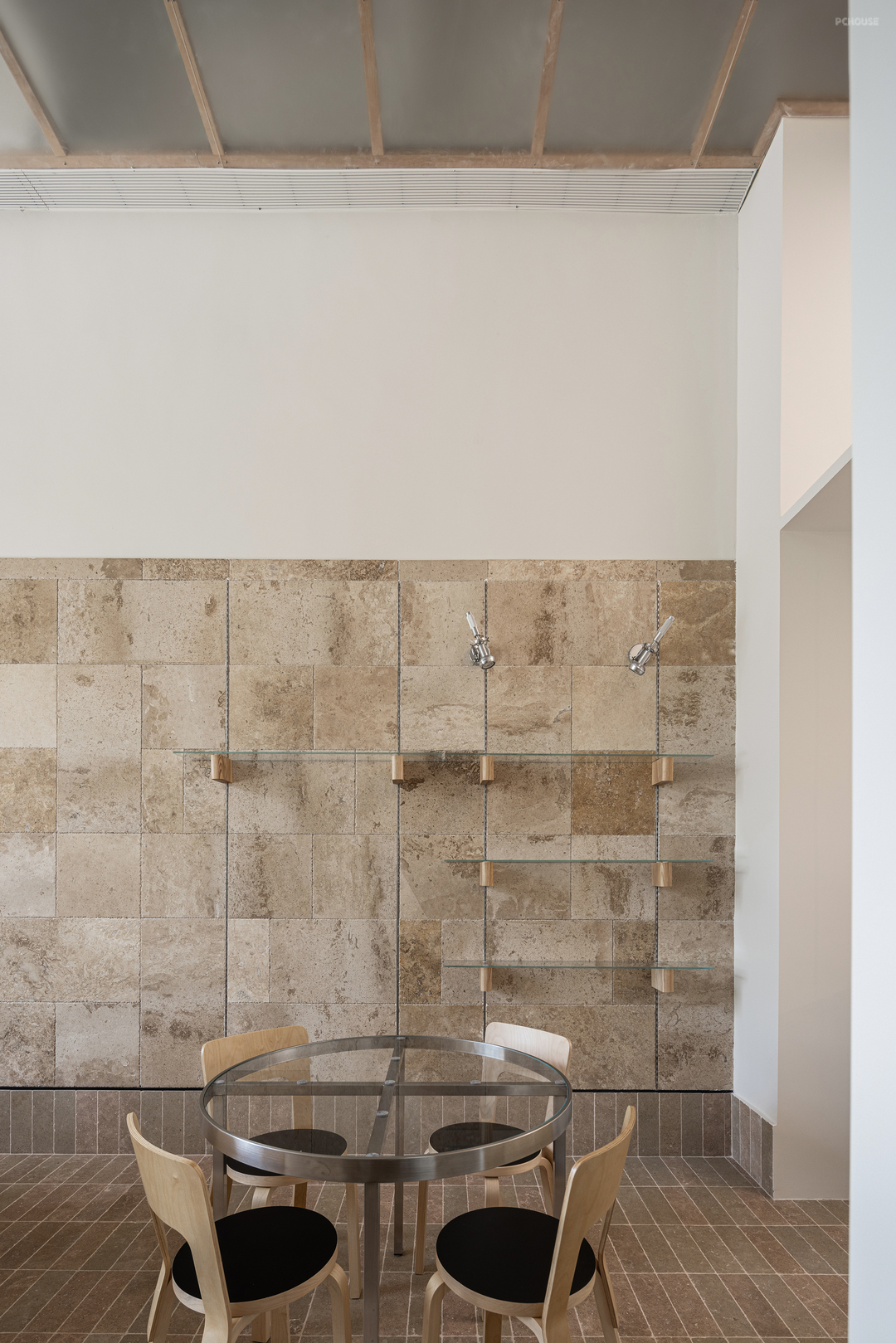 前言: stamp意为邮票、印记、印戳。stamp cafe ll店以主理人之愿用更随意的姿态入住社区,供来往者休憩与放松。本案将更多的空间给到面包区,后厨的操作区、烘培区与打包区一气呵成,让客人能同时享受到美味的咖啡与面包。咖啡区面积不大,却不会使人感到压抑,良好的采光与门头玻璃的采用,使室内空间自然延伸到室外。门头内退的方式,亦在拉近互动,空间交流。