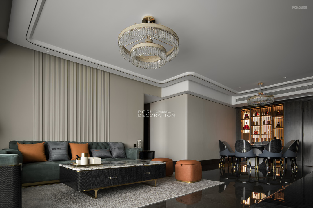 结合业主的审美偏好和生活状态,我们秉承着重装饰轻装修的设计理念展开改造,设计手法虽然简洁大气,但是材质选择上会更加考究。运用金属、大理石、水晶、皮革等多种元素,经过巧妙混搭, 让空间弥漫优雅与奢华,令每一处细节尽显精致,营造居家高质感的生活气氛。