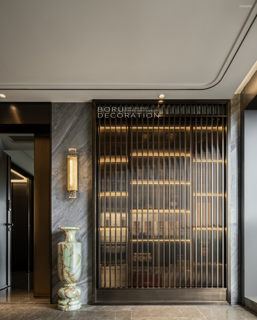 本项目是位于广州番禺的私宅,是一个幸福的五口之家,业主是一对追求生活品质的夫妻。不仅重视生活情调,而且拥有独特的审美品味。男业主是资深的酒类爱好者,日常也会收藏艺术品和绘画,所以业主也有比较高的展示需求。