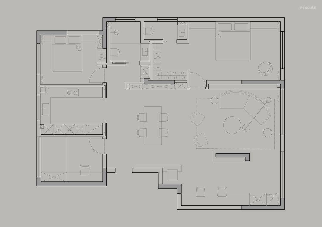 前言: 本案最喜欢的点在于将空间格局打开后对于承重墙的弱化方式,弱化梁柱的方式有很多,我们希望处理后的样子是为空间而生,是为所需要的功能而造。而不是刻意的装饰,让结构中必不可少的承重墙成为空间不可或缺的亮点所在。