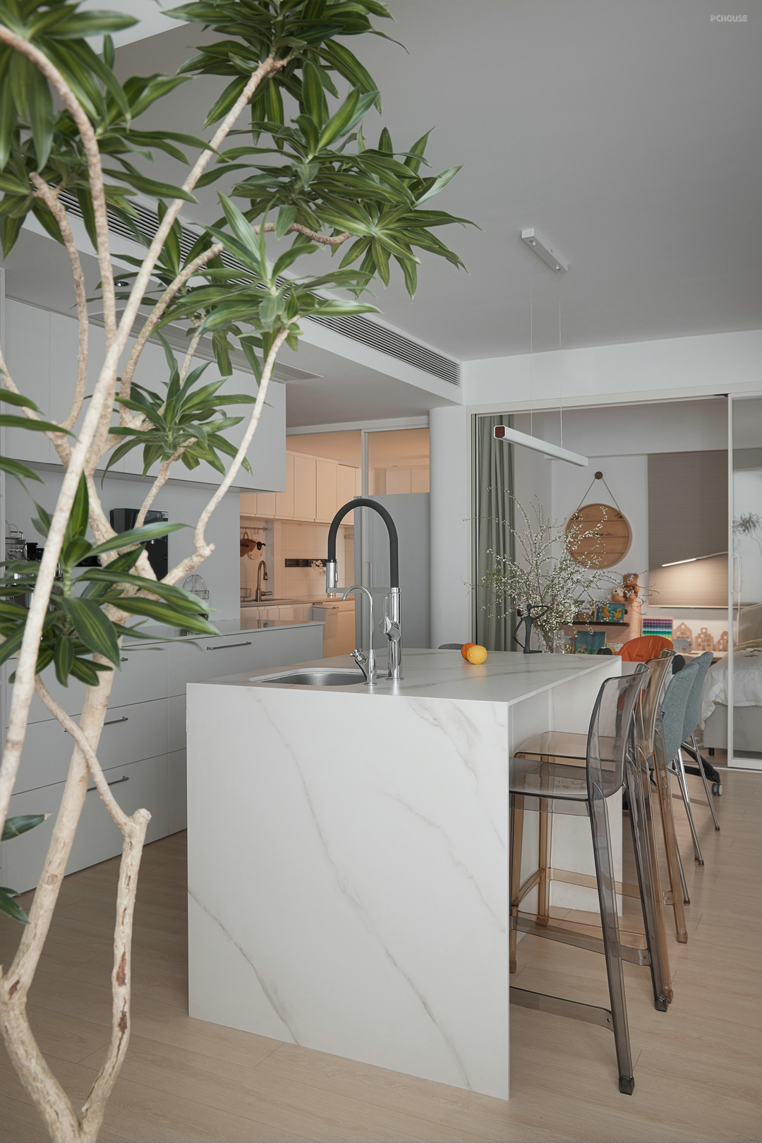 客餐岛一体设计,洄游围合式的空间,给家人间的互动带来了更多的多样性,这里成为家庭的重要活动中心;