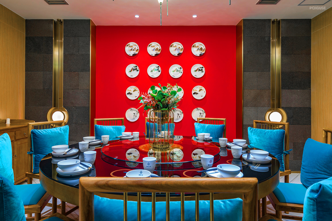 看那一抹红色,惊艳了一包厢的客人。那墙上的鸟笼,让整个空间显得祥和,蓝色又是打破宁静的一抹惊艳。