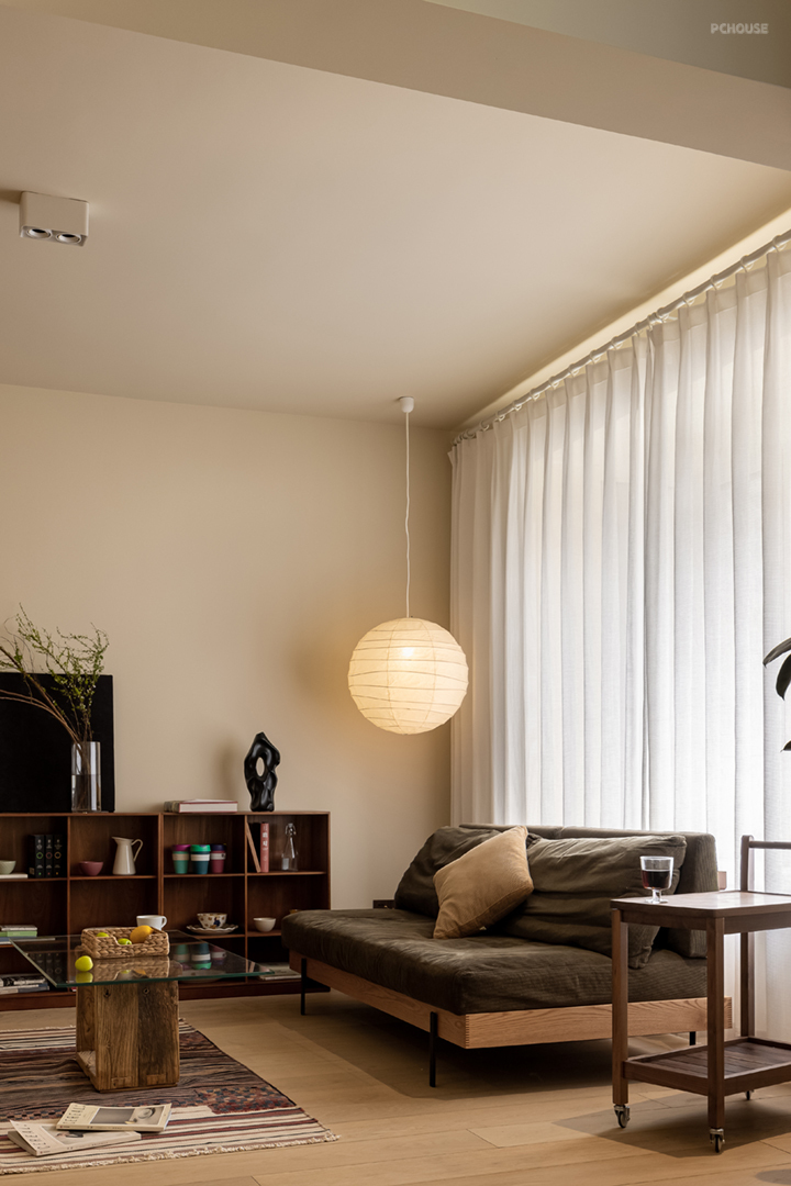 此外,野口勇的纸灯带着屋主特有的日式情怀,清浅摇曳在角落里,像极了浩瀚星空中那个亲手放飞的祈愿灯,轻快的氛围点染,想要细细的聆听每个甄选物件的故事·最爱这一角;我们还选择了coznap休闲单椅,让她可以在舒适的环境下放松身心,享受一杯精致的下午茶。