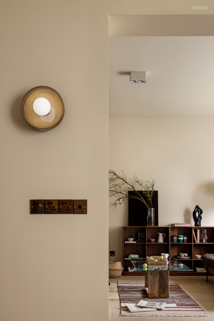 两组置物架摆满了各种“藏宝”,这些小物件既可以增加整个房间的立体感,还可以为她提供更多的收纳空间。在客厅中央放置了一张怪兽设计原创手工定制的茶几,它的独特性和原创性都能够吸引人们的目光。沙发是MUMO木墨的林间沙发,它的设计简洁舒适,可以提供舒适的坐卧体验,就连插座面板都透露着复古的感觉。
