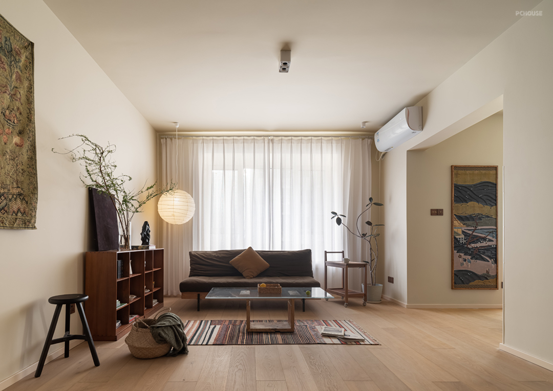 原始空调外机的位置被”纳入”使用,地面做抬高处理,形成这个舒适悠闲的榻榻米空间·最好的采光与四季相遇,一盏落地灯与一本读物,诗意风雅尽显·空间用它的语言描绘出一个惬意安然的氛围,你想做什么呢?都随你。