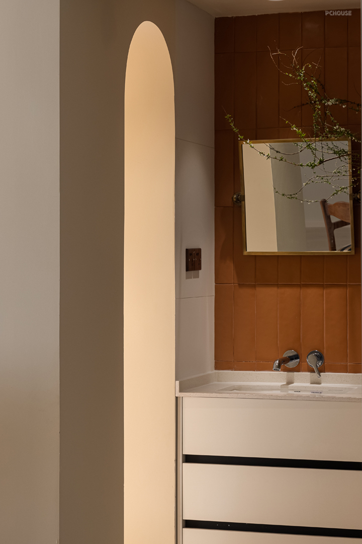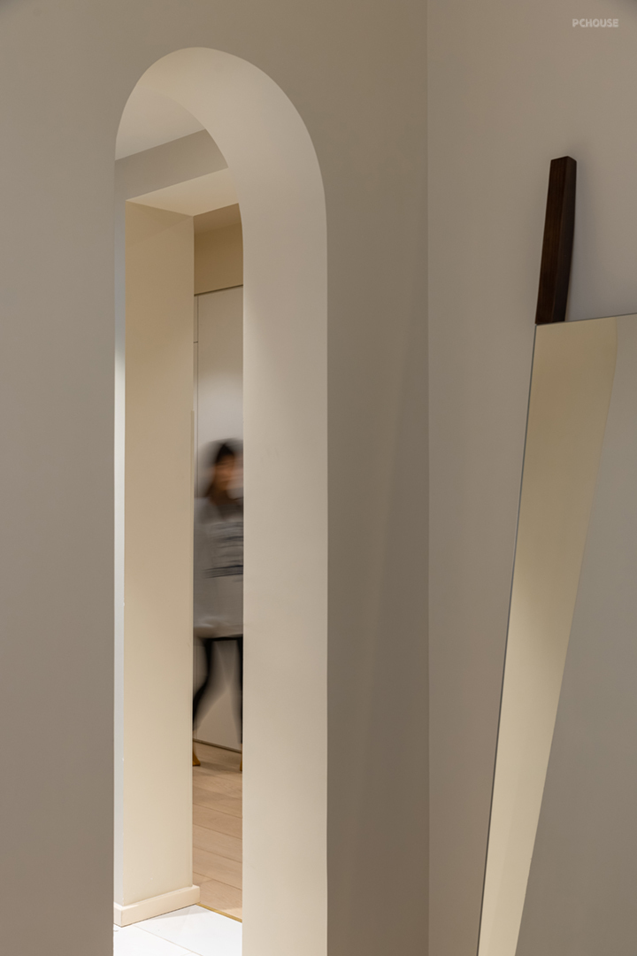 改造卫生间动线后,便利客人的使用,移动墙体后,考虑到主人主卧的需求,特意“开了个洞”,依据屋主身形打造,小巧且有趣·视线被结构“切分”,透过不同的角度框出不同的景致,以多重动线引导人去咸知空间结构美。