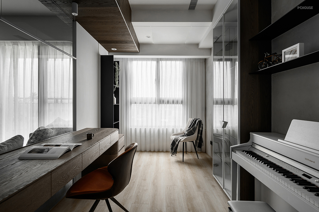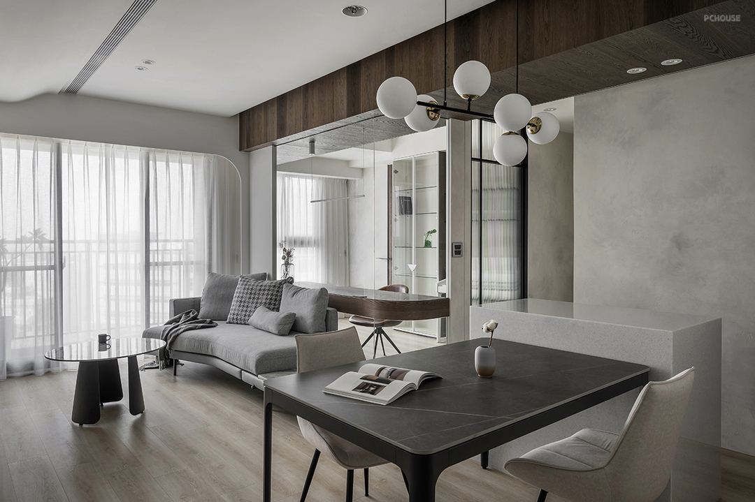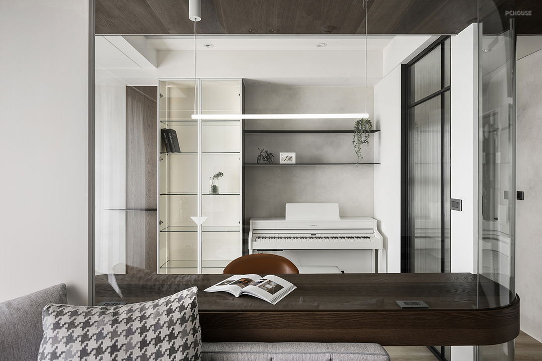 追求豐沛採光的業主,希冀將明亮陽光帶進空間,呈現出清新通透的居家氛圍,同時想在全室打造一間獨立書房,滿足閱讀放鬆的生活需求,另外其有運動習慣,因此冀望在空間中置入瑜珈吊環,建立生活與運動是密不可分的關係,也讓居家充滿更多的機能性。