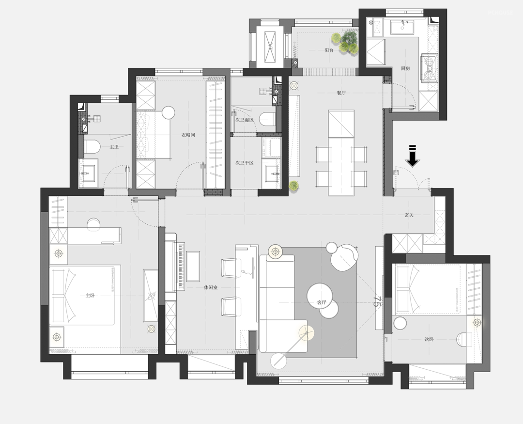 轻推门扉,入户归来的那刻起,便开启了与生活的完美邂逅。凌图设计以细腻思维换位思考,悉心主人的内心期盼,从居者视角出发,勾绘出温馨的生活场景。