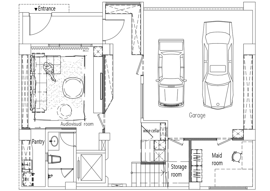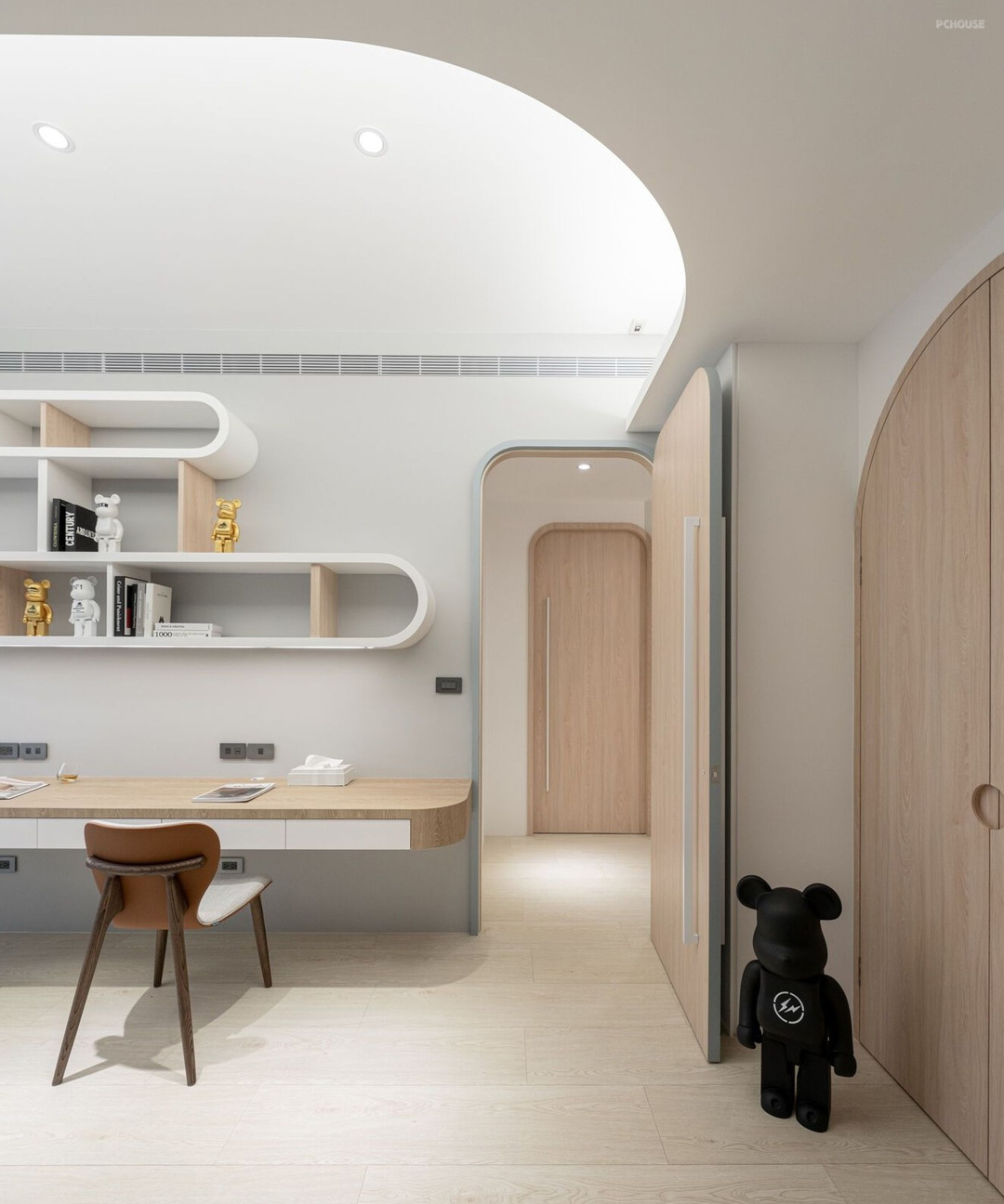 空間在設計本身著重於連貫性的表現,透過轉折、延伸出視覺上的反差美感,藉由虛實比例上消弭結構壓力,從居住者的行為模式出發,呈現居住者獨特的品味及性格。