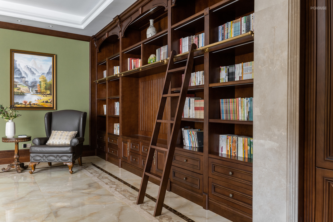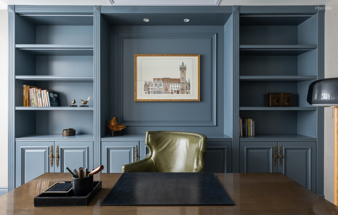 书房是男主人的私享之地,办公、阅读与会客,在各处留下身影,但仍可保留一方清幽与僻静。