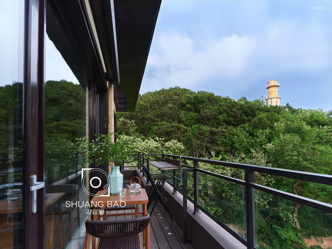 卧室的床来自法国品牌Ligne Roset 兼具美观与实用性,浮雕般的肌理与简单的结构造就一个舒适的睡眠平台,让屋主可以安然入睡。大面落地门窗的设计,不仅可以让光线自由的流动,也能一眼看到青山绿林,享受大自然的恩赐