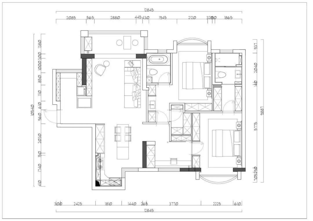 ✦ 把原本的房间书房调整为次卧 ,原本的客卫纳入到次卧形成套房。两个套房空间,便捷了使用习惯。而且抢出了衣帽间的位置。