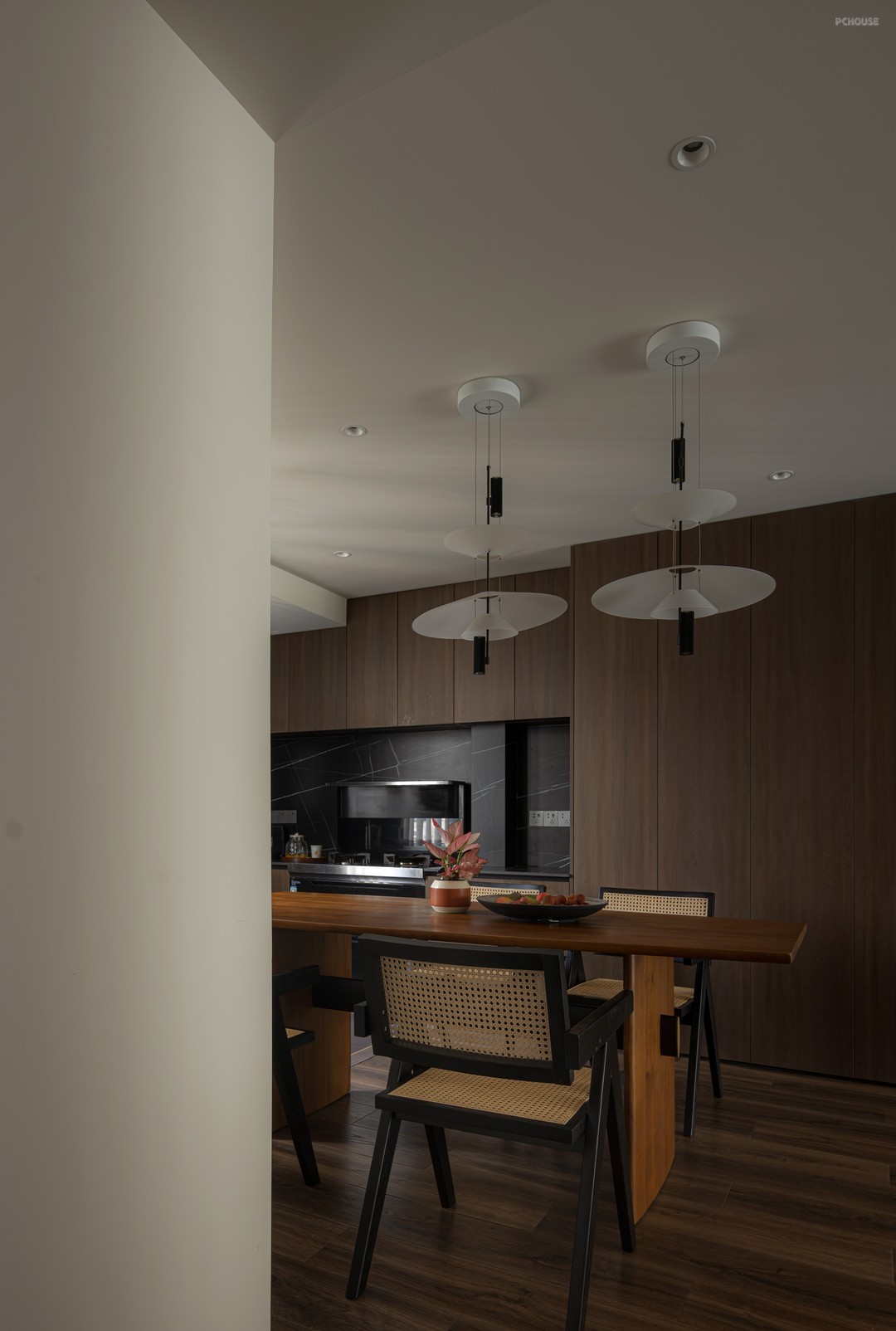 将厨房打开,与餐厅结合,优化动线,在使用厨房时操作更为流畅。生活与美共存,日常与自然共生,每一处都留下生活的痕迹。家庭温暖让空间突破功能的边界,成为情感流动的纽带。