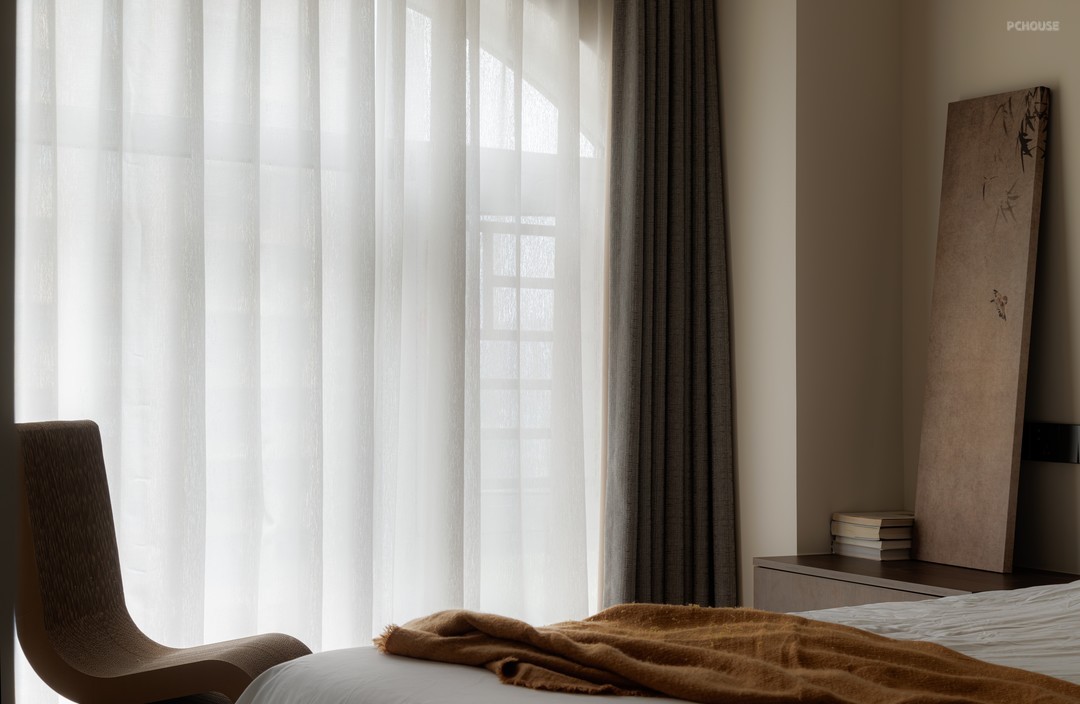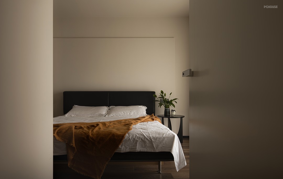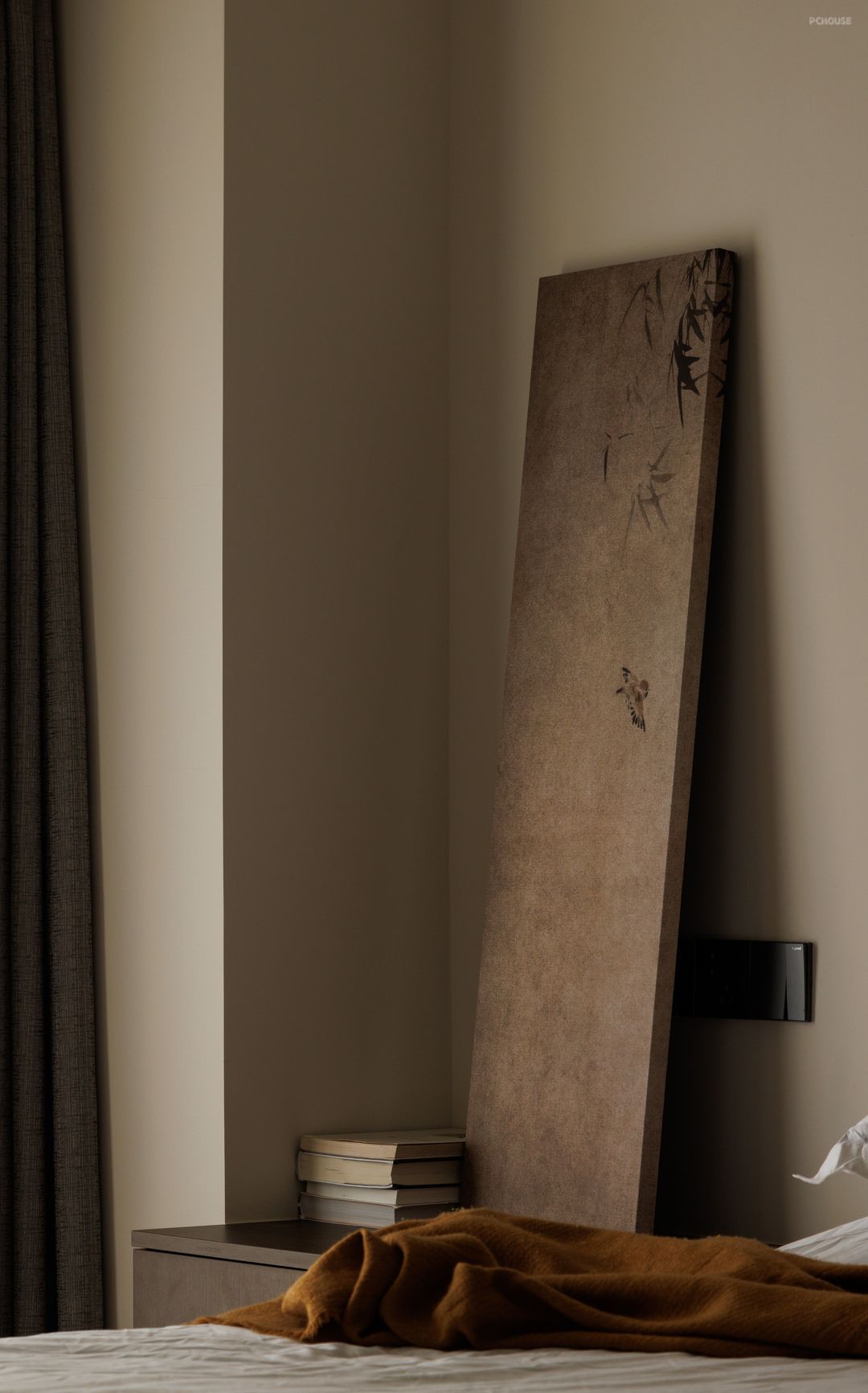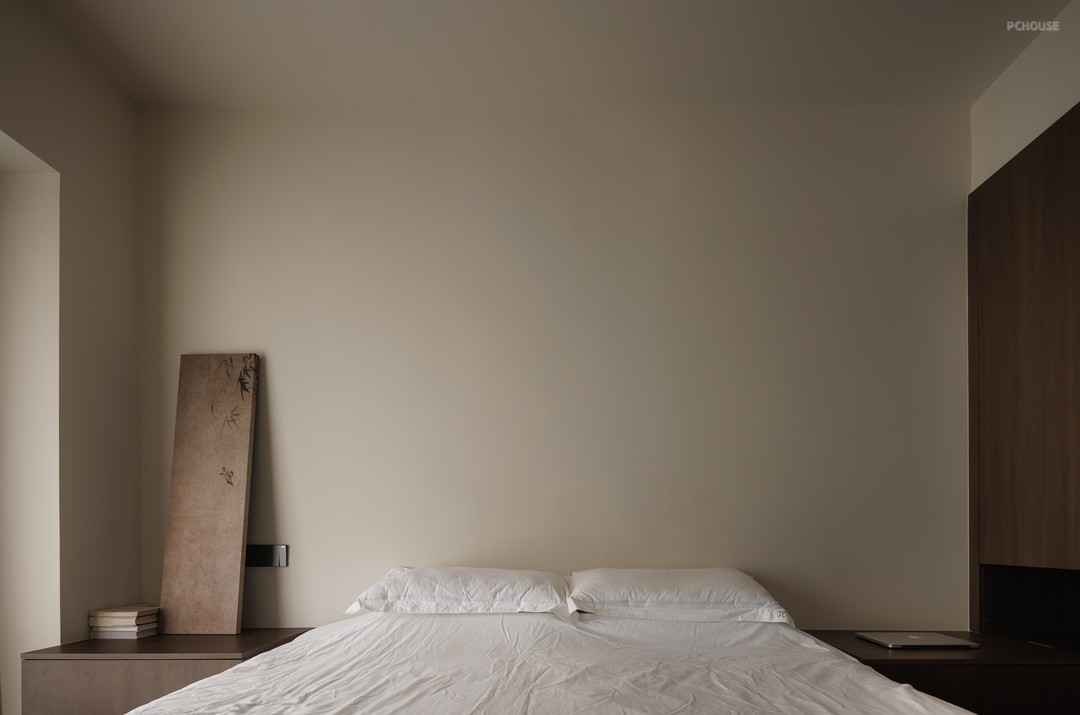以棕色为基调,暖白色与棕色相衬托,色彩的搭配与点缀让空间安静而舒适。