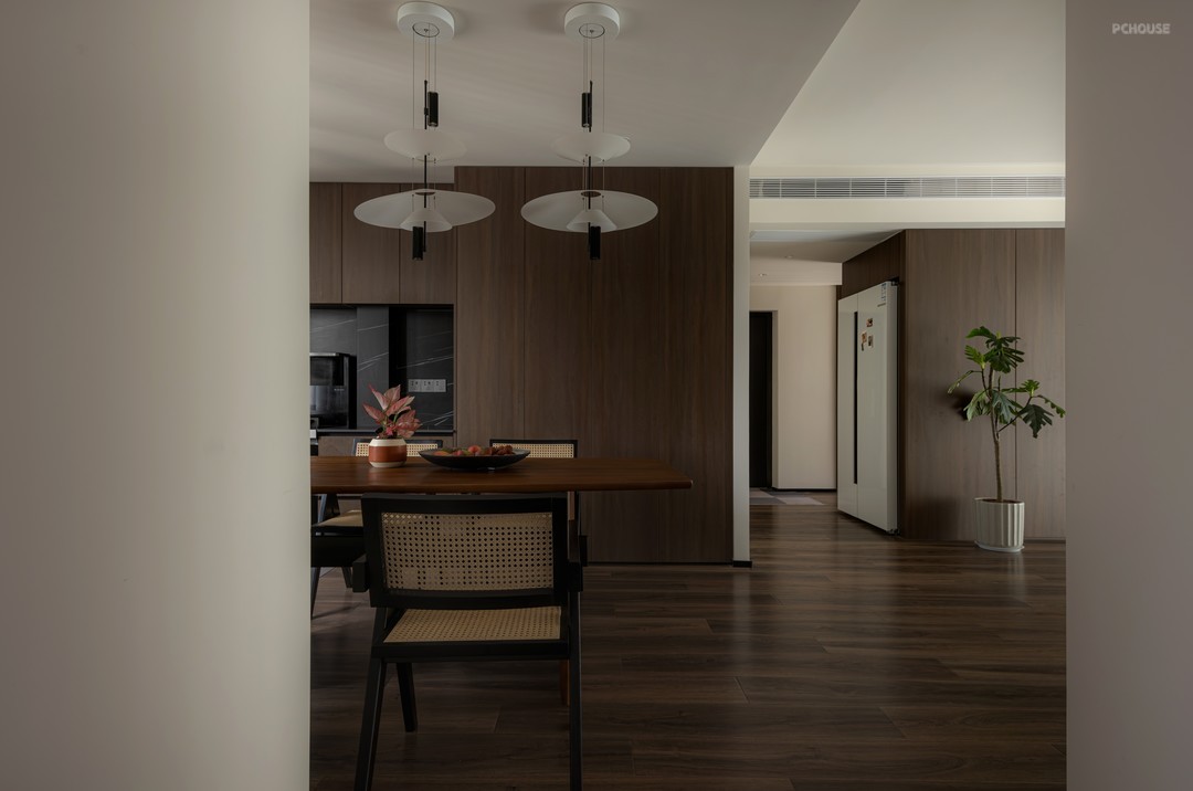 这个家就是为父母而设计,孩子偶尔回来小住,家的整体属于下沉色调,温柔且坚定,采用的木质也是深色调,空间灵动且质感满分,简单基本上没有过多的装饰面,收纳十足,拍照时业主已经入住了9个月,与业主的气质完美匹配。