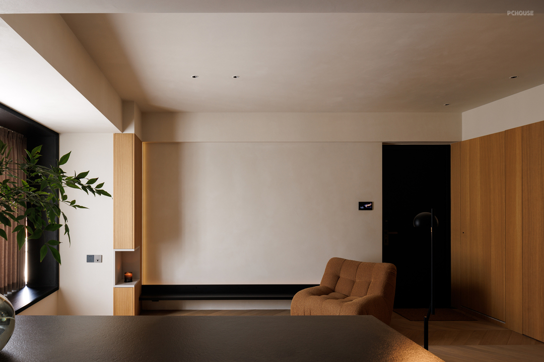 客厅散落的几处灯光,为空间带来幽静的氛围感。
