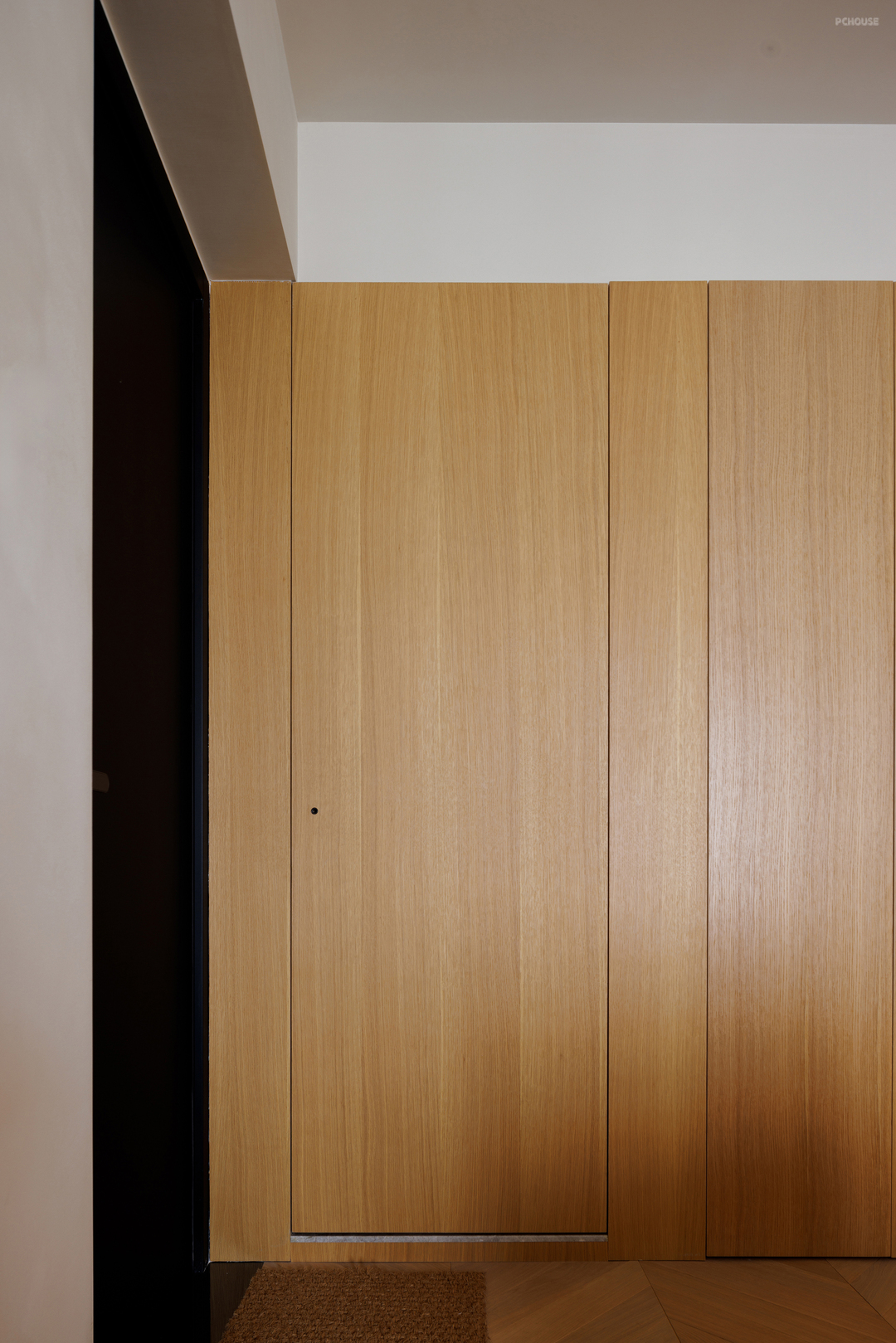 利用原有餐厅部分区域增加出来的更衣区,让衣物有了更好的归宿。更衣区串连着主卧和休闲区,从主卧门一进来,不论是睡觉还是发呆,都有了好去处;