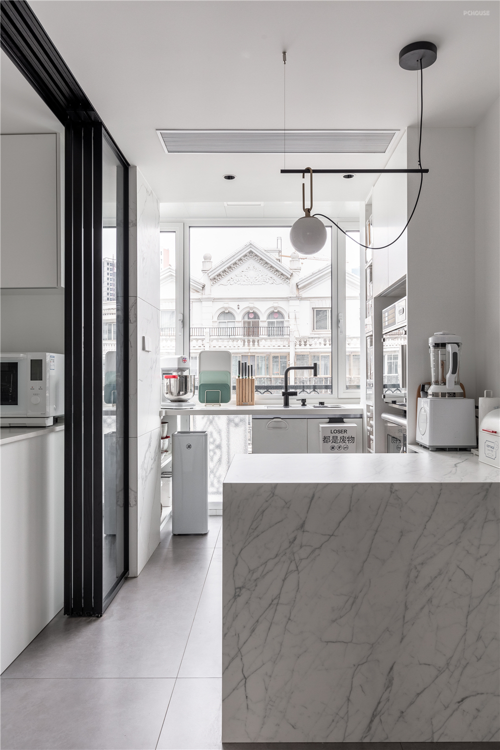 我们的业主夫妇带着他们12岁的小朋友就居住在这样的环境中。作为外企高管的业主夫妇在平时繁忙快节奏的工作环境里,在下班回到家之后想要拥有静谧的生活环境,这也是当初他们定下这套房子的原因之一。为了满足男主爱好手办和电影器材以及小朋友爱好的乐高,需要足够的收纳、展示柜;我们的女主安妮则喜欢烘焙做料理,所以对于厨房的设计安妮表示了十分的看重;喜欢读书,家里也有很多很多书;喜欢种花,对于露台她也很有想法。