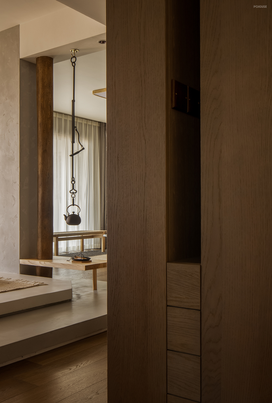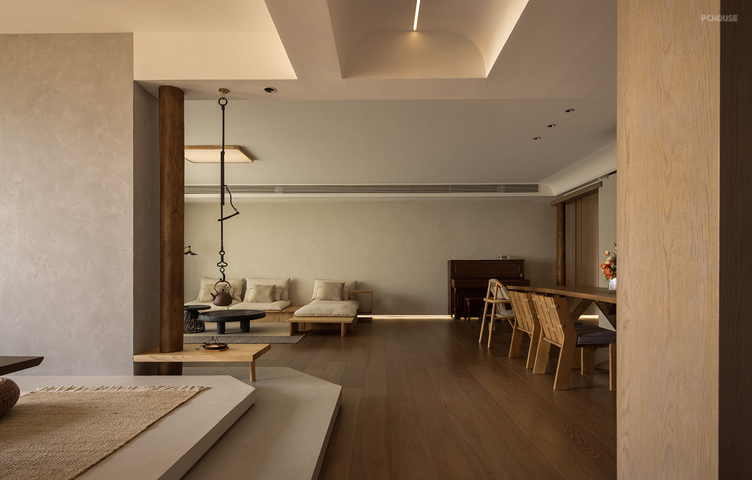 4. 茶室的半通透设计,结合客厅,视野更加开阔。